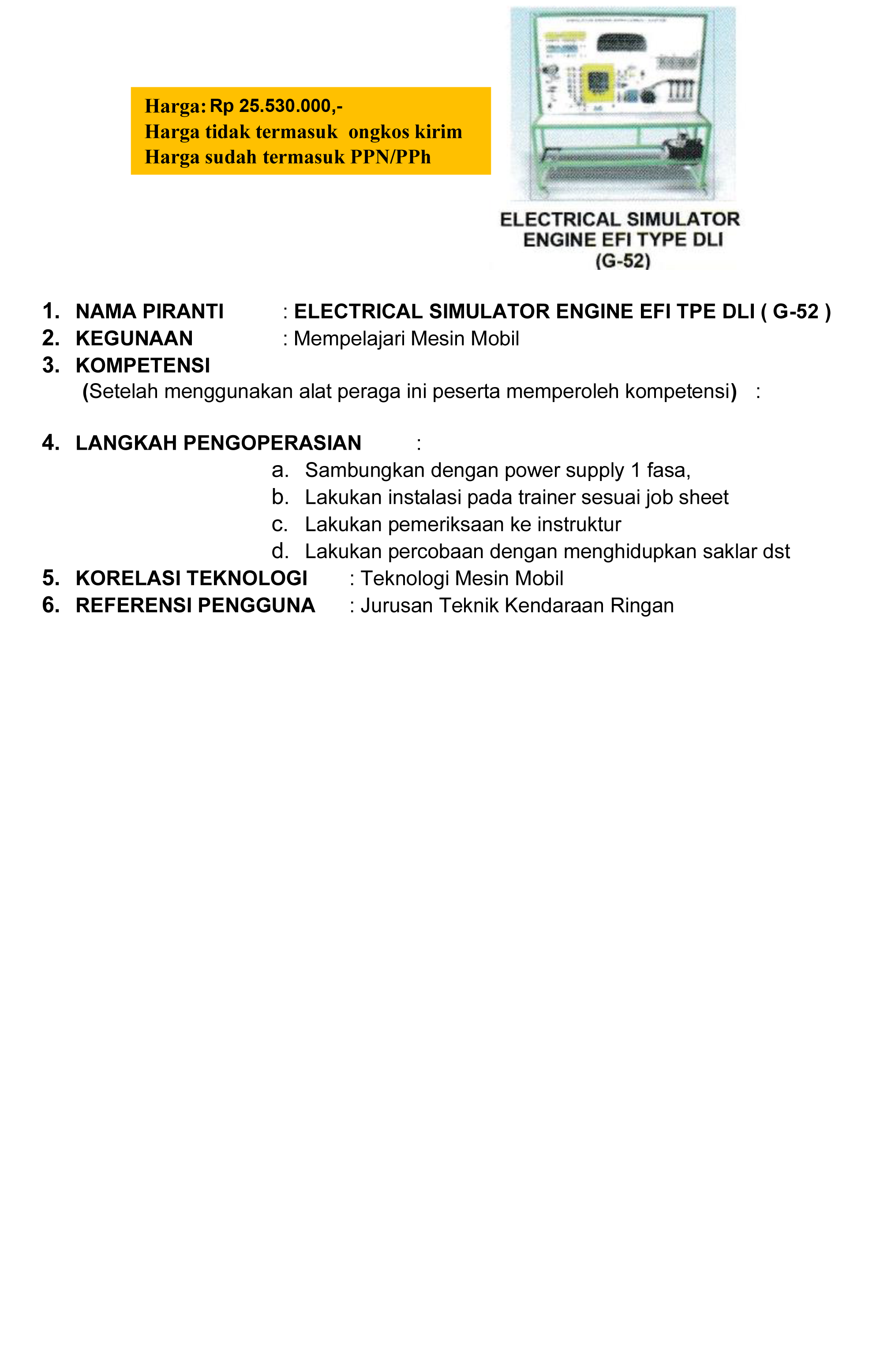 ELECTRICAL SIMULATOR ENGINE EFI TPE DLI ( G-52 )