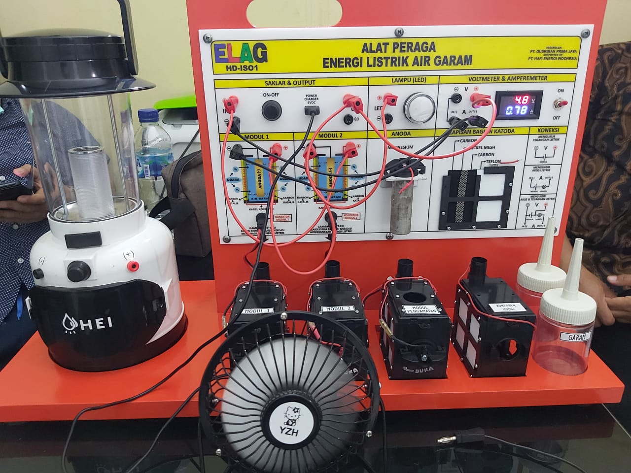 Alat peraga listrik air garam bisa menyalakan kipas meja dgn terminal usb