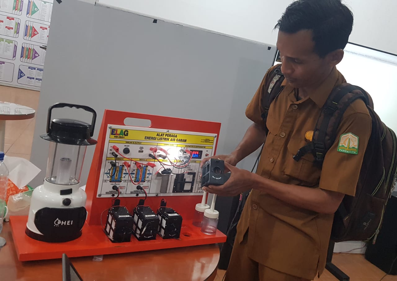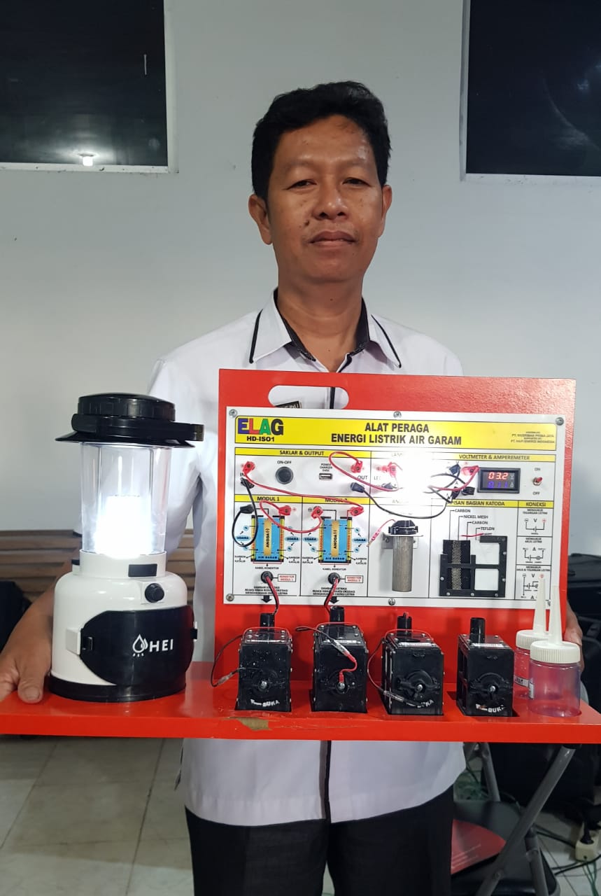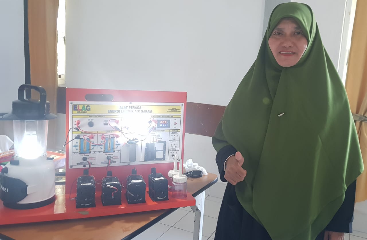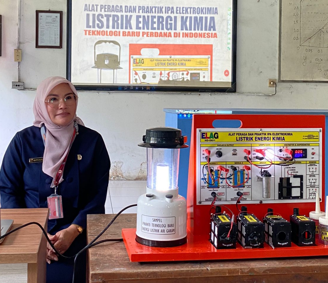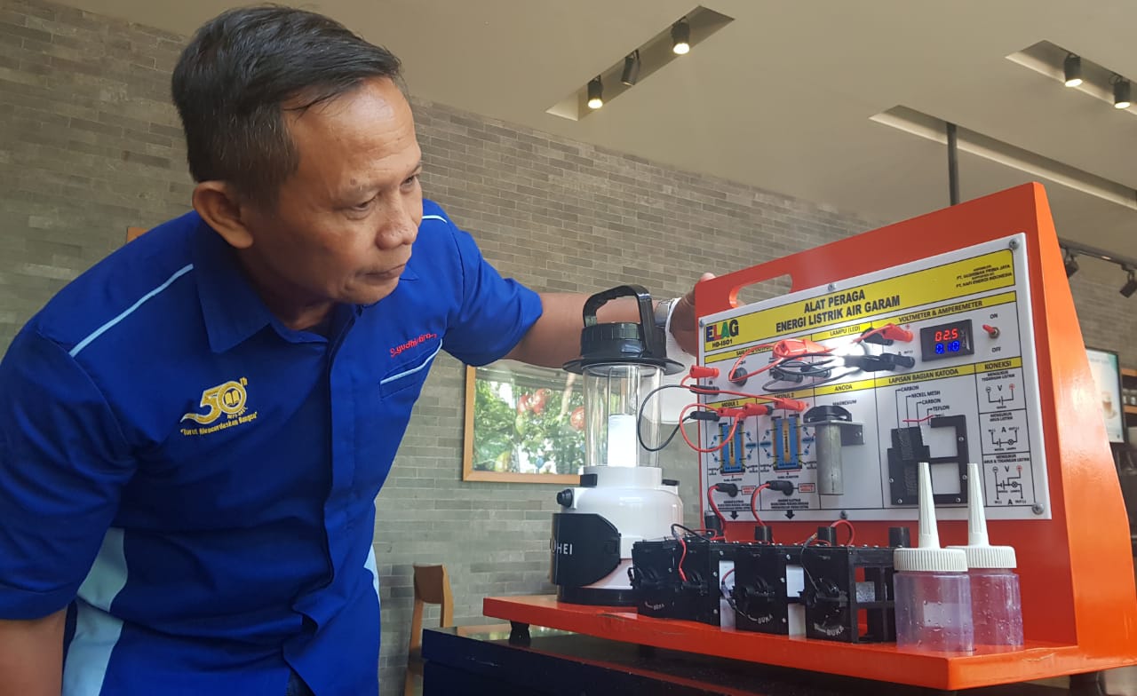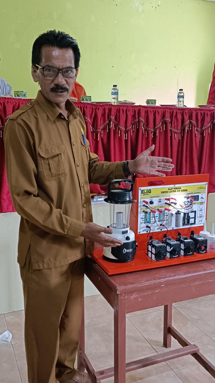 Guru SMKN 1 Rengas Dengklok Karawang Mendemonstrasikan Alat Peraga IPA, Energi Listrik dari Air Garam
