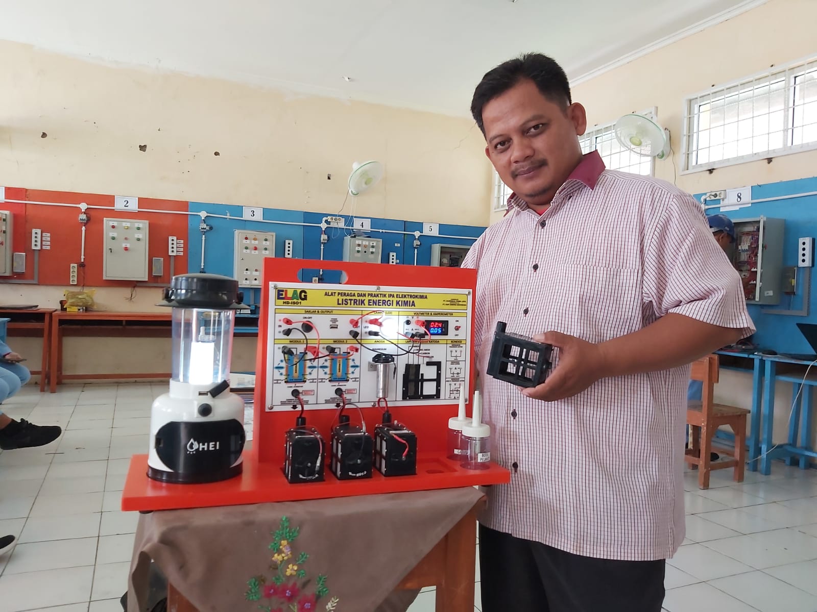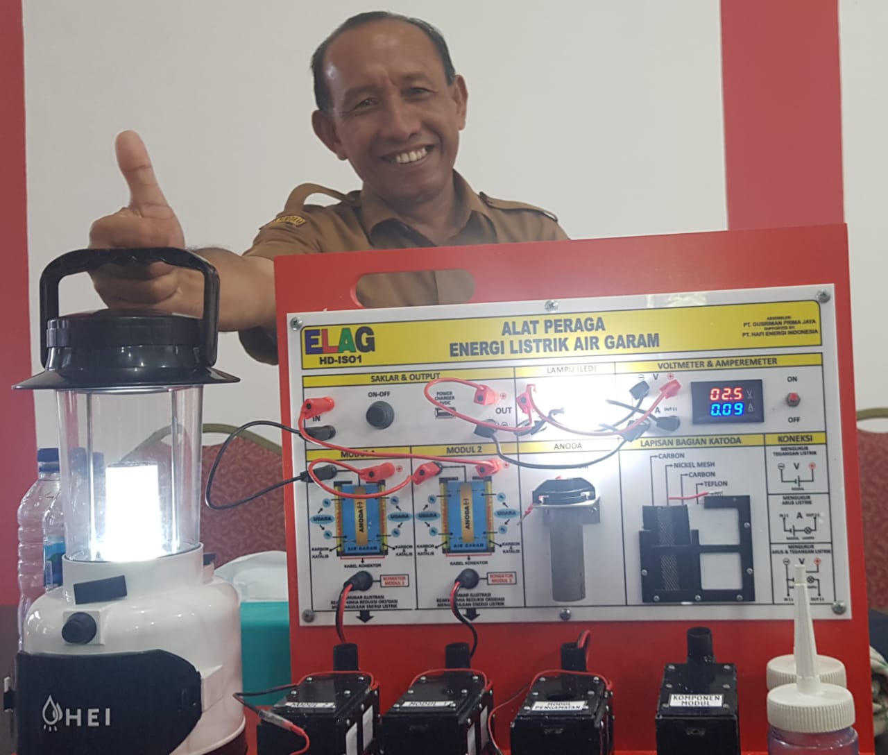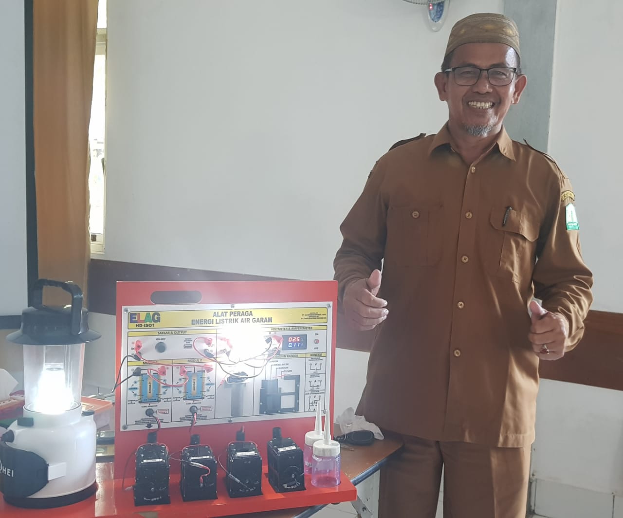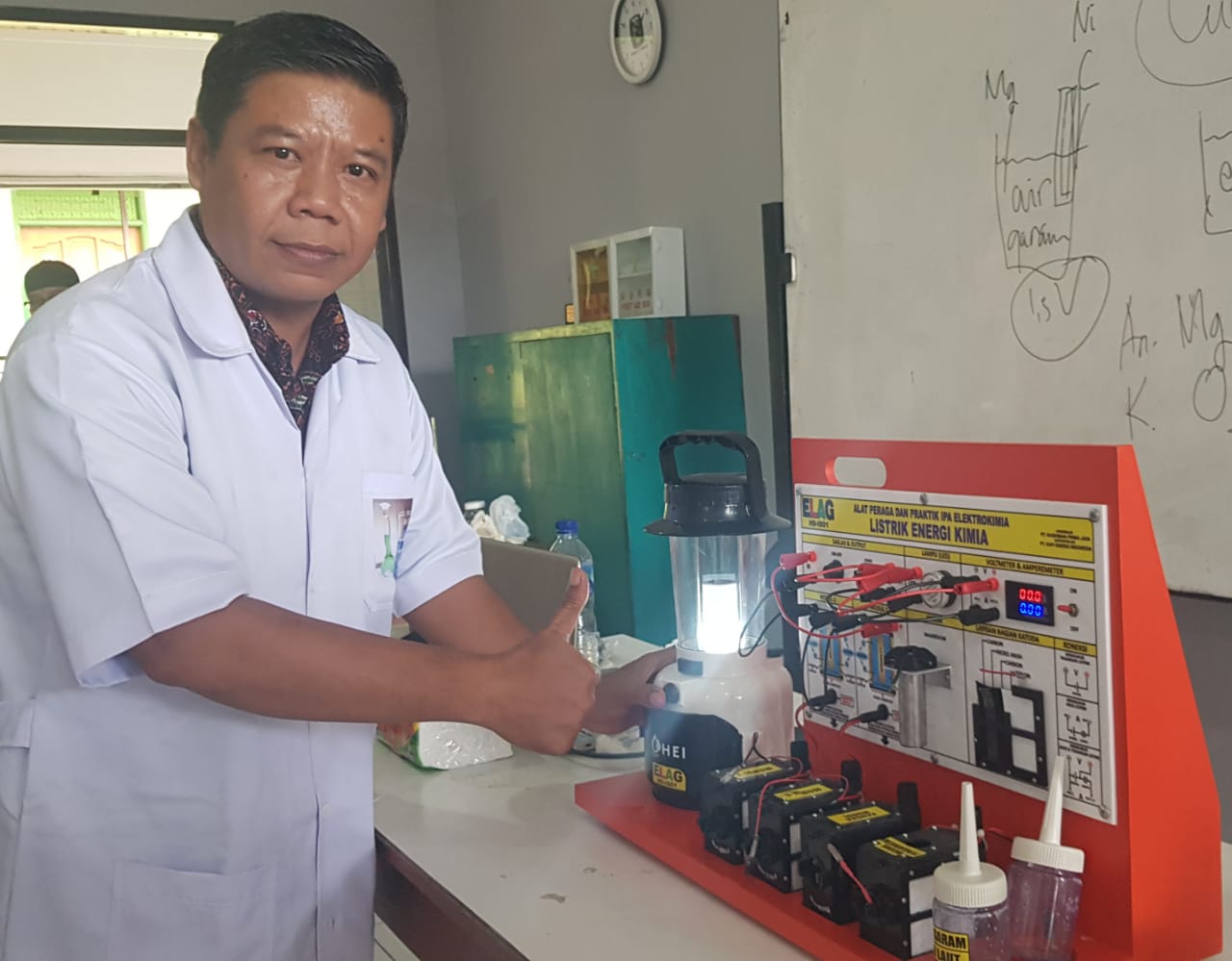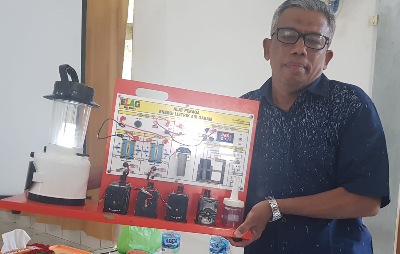Guru SMKN 1 Rengas Dengklok Karawang Mendemonstrasikan Alat Peraga IPA, Energi Listrik dari Air Garam