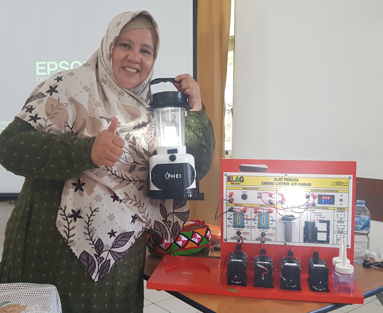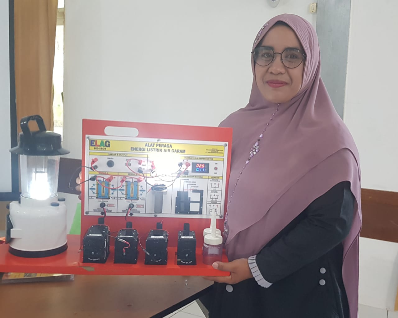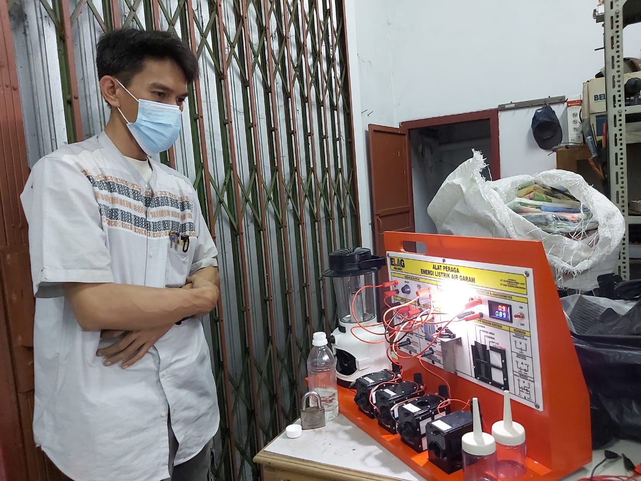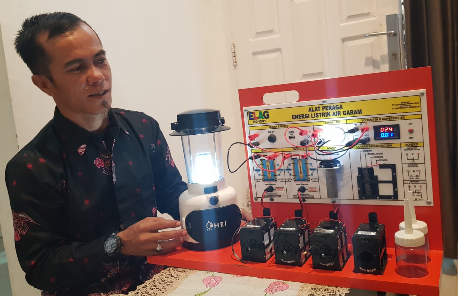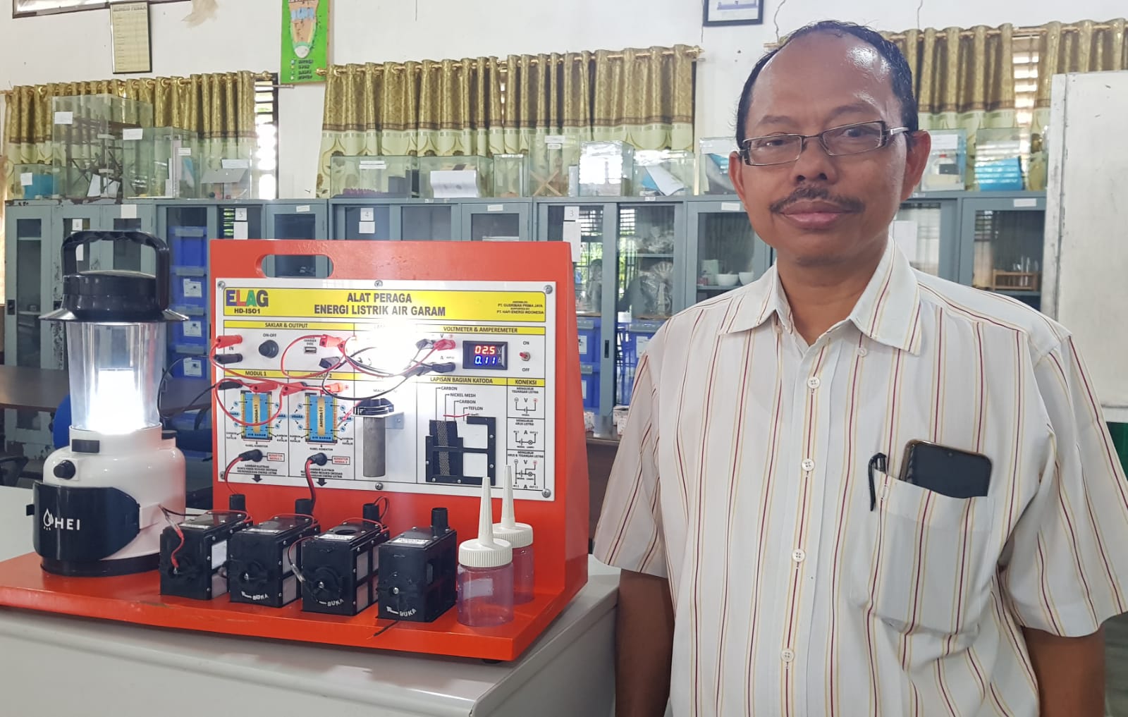 Guru SMKN 1 Rengas Dengklok Karawang Mendemonstrasikan Alat Peraga IPA, Energi Listrik dari Air Garam