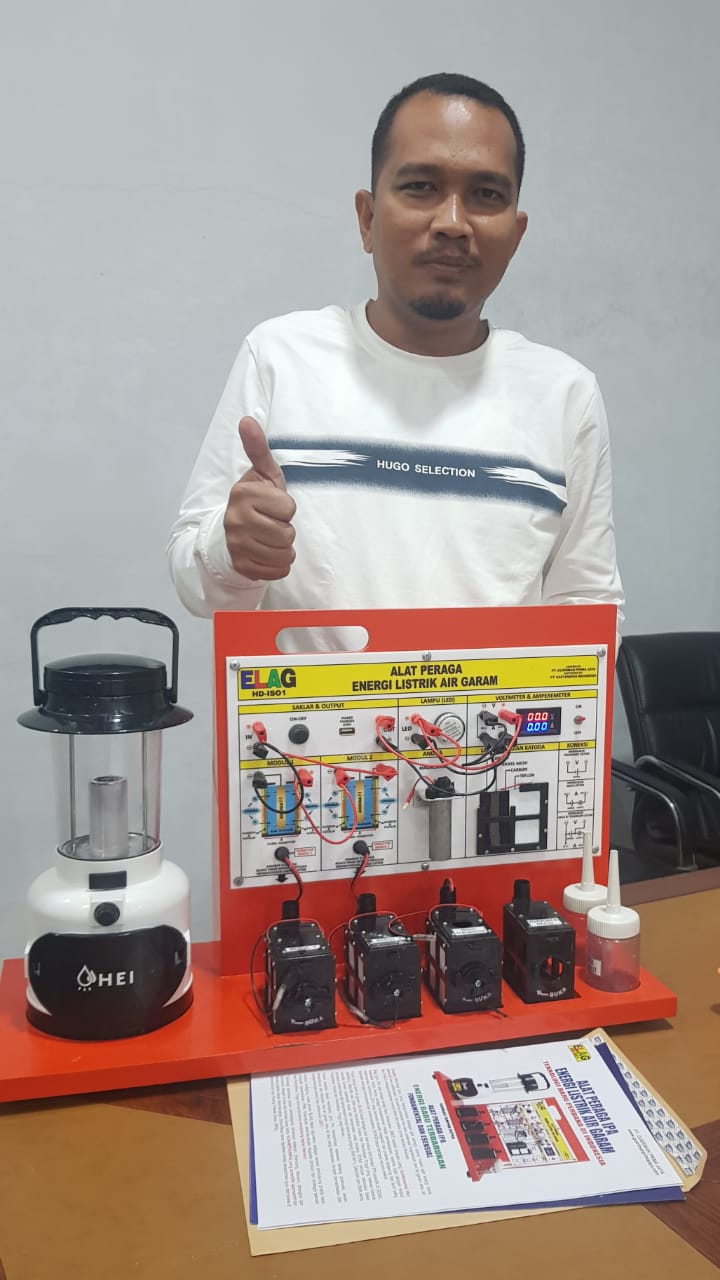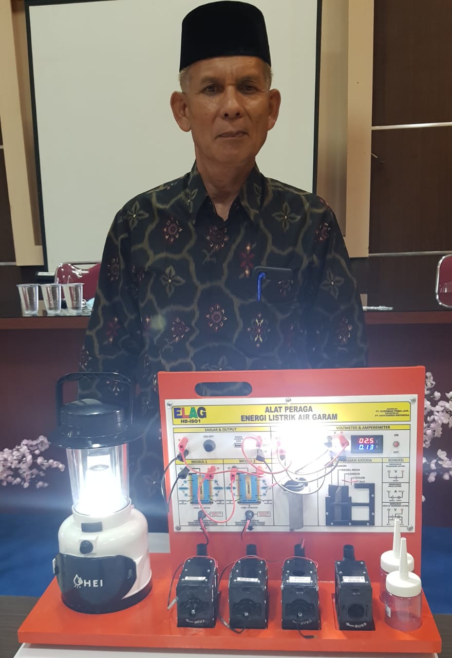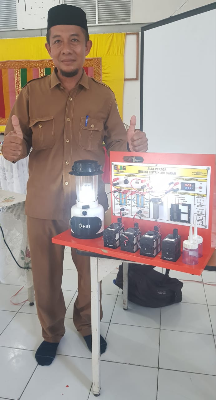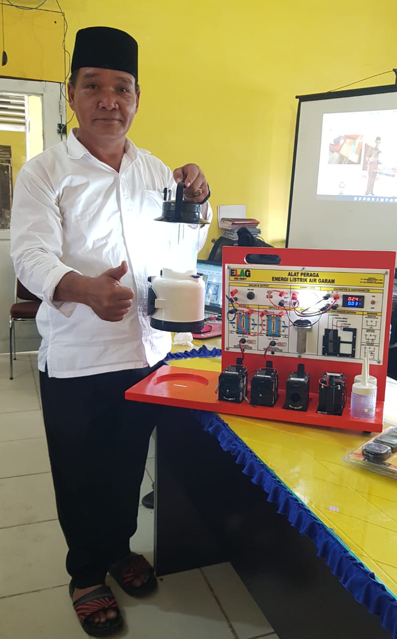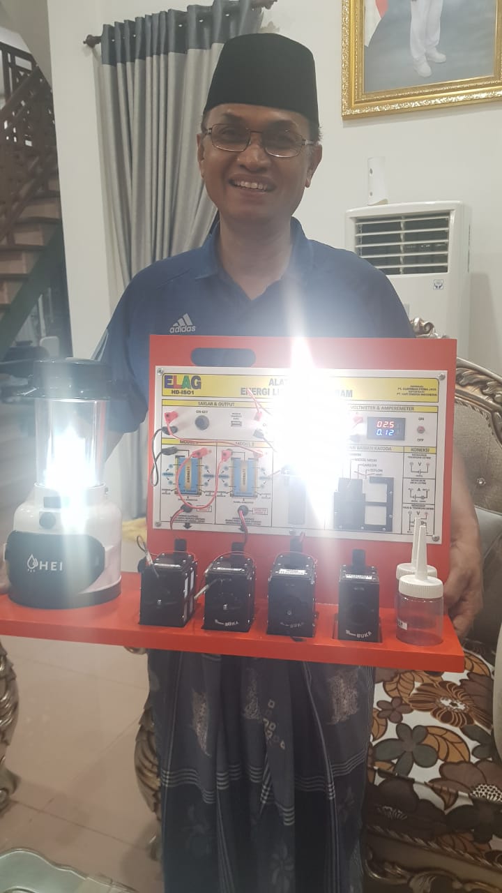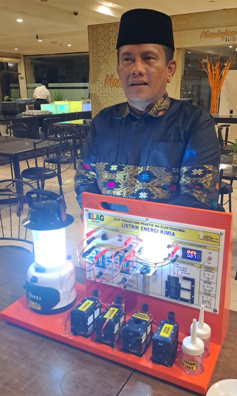 HERMANSUR, SE., M.Si. Praktisi pendidikan Provinsi Sumatera Utara memberikan testimoni Alat Peraga IPA Elektrokimia ELAG sebagai improvisasi kandungan yang tersembunyi dalam ayat Al-Quran yang berkaitan dengan energi.