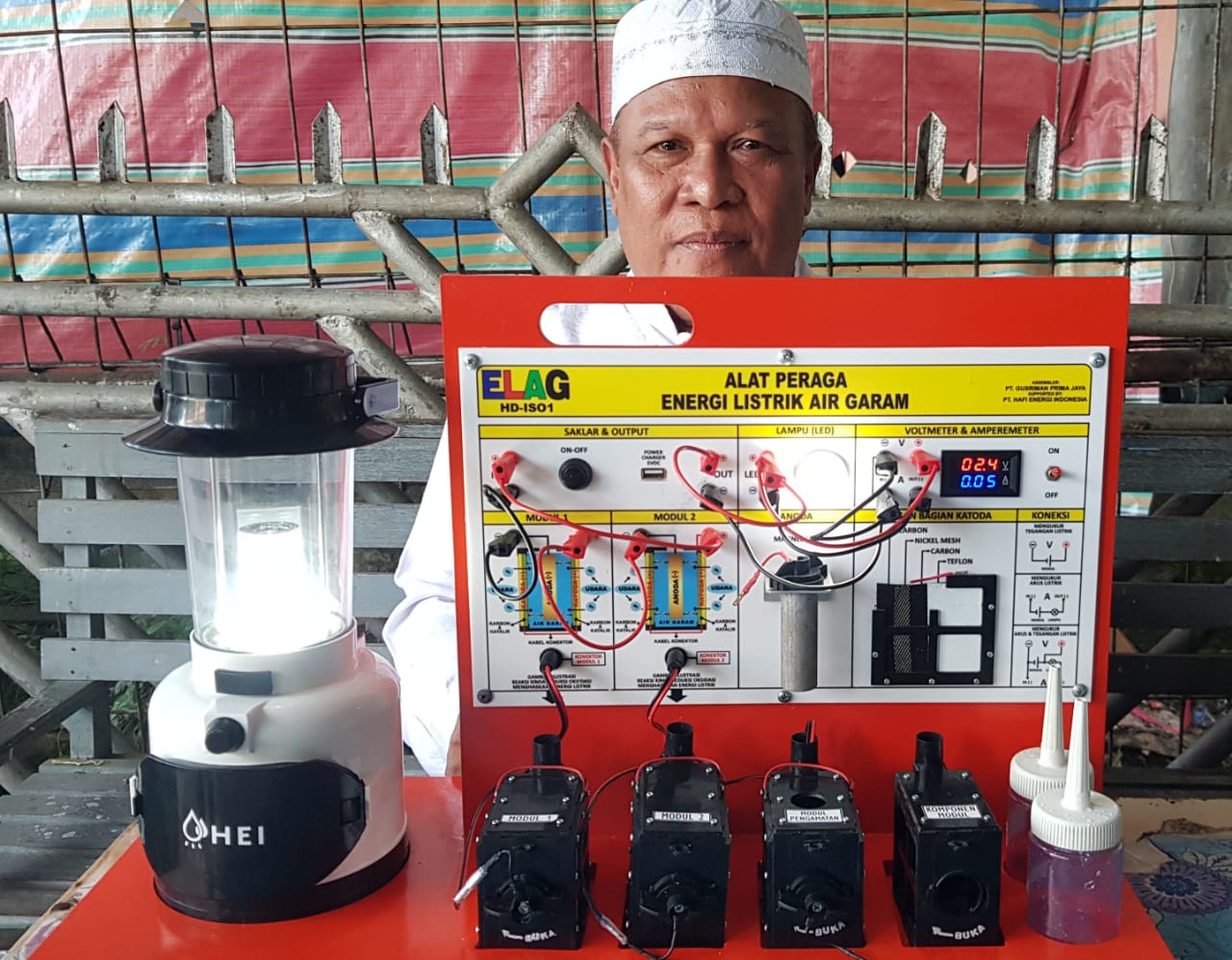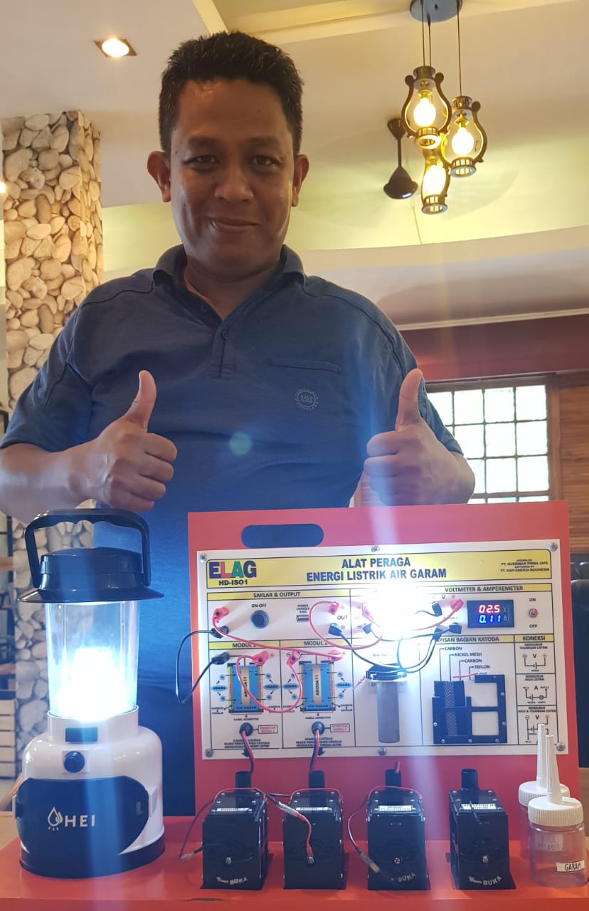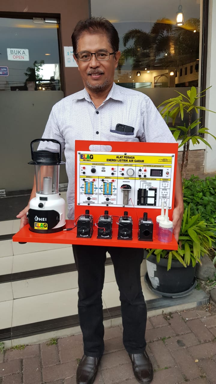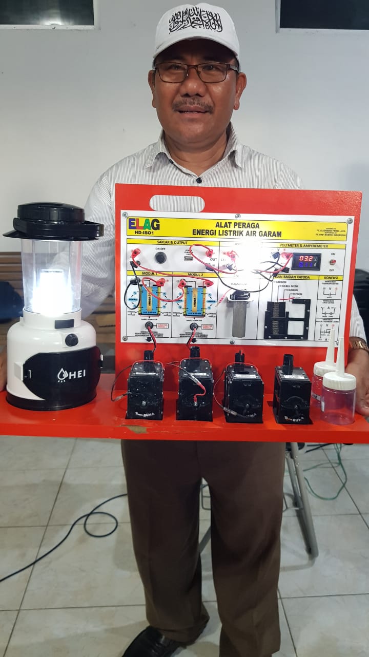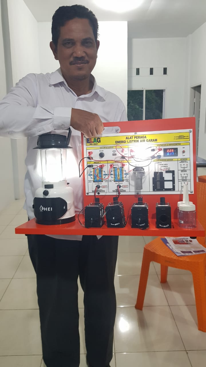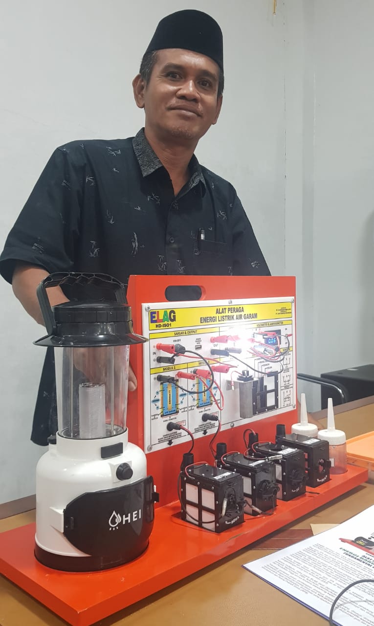 HERMANSUR, SE., M.Si. Praktisi pendidikan Provinsi Sumatera Utara memberikan testimoni Alat Peraga IPA Elektrokimia ELAG sebagai improvisasi kandungan yang tersembunyi dalam ayat Al-Quran yang berkaitan dengan energi.