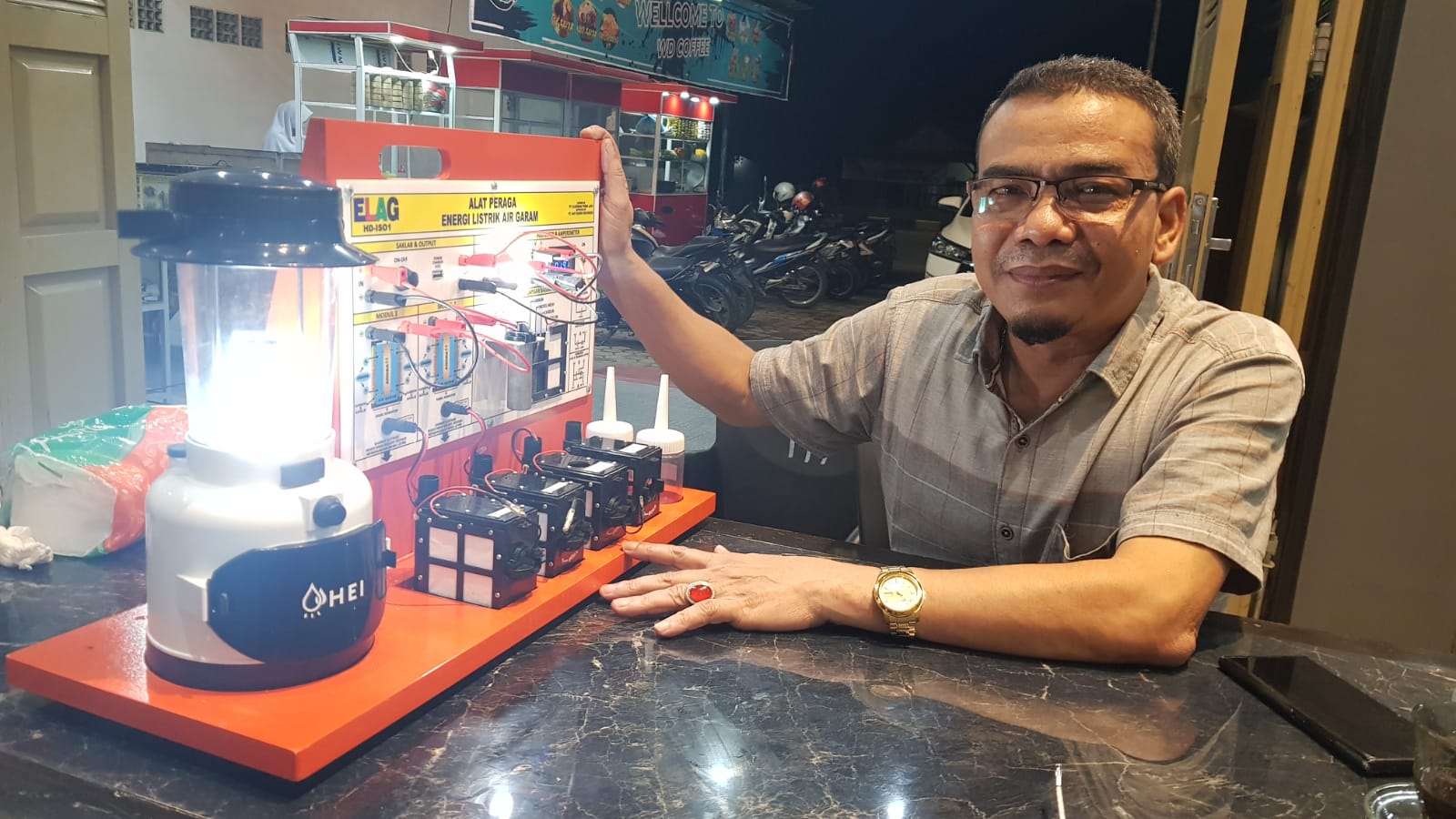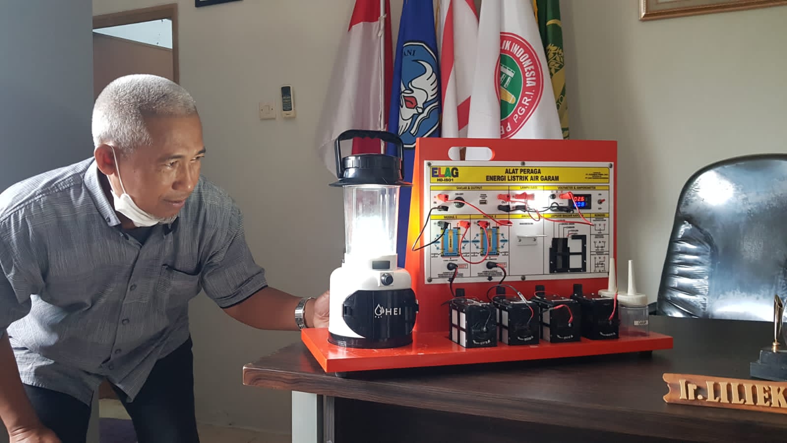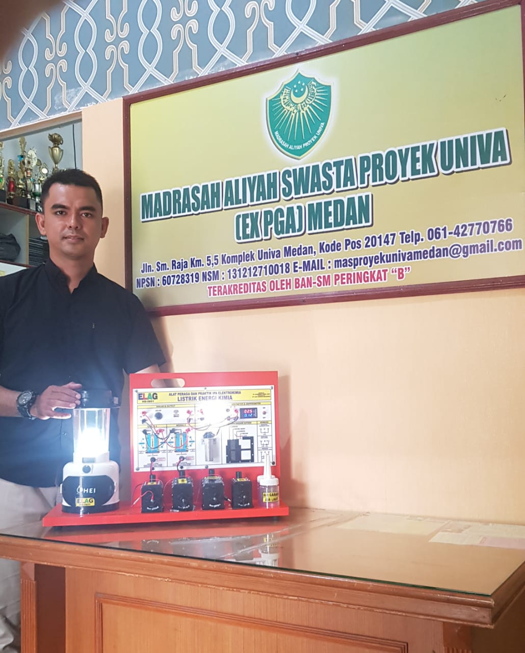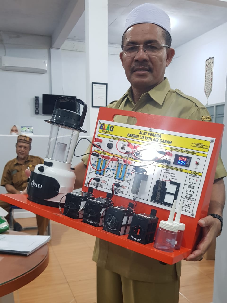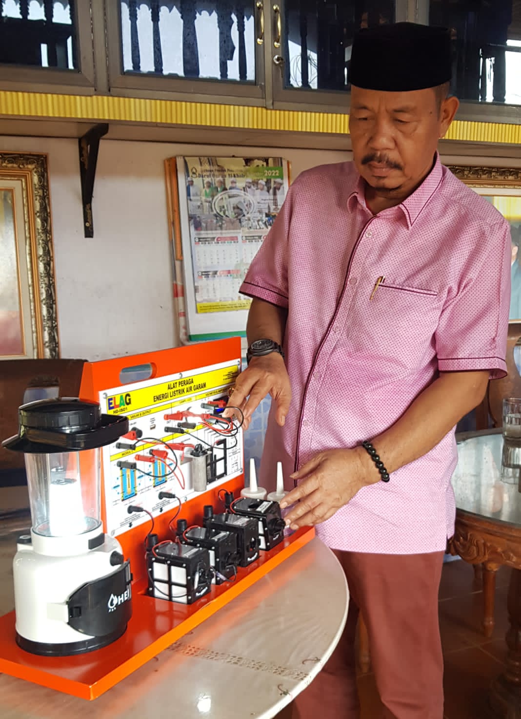 HERMANSUR, SE., M.Si. Praktisi pendidikan Provinsi Sumatera Utara memberikan testimoni Alat Peraga IPA Elektrokimia ELAG sebagai improvisasi kandungan yang tersembunyi dalam ayat Al-Quran yang berkaitan dengan energi.