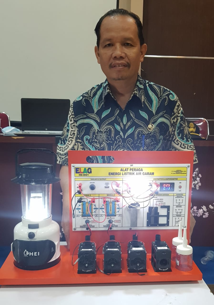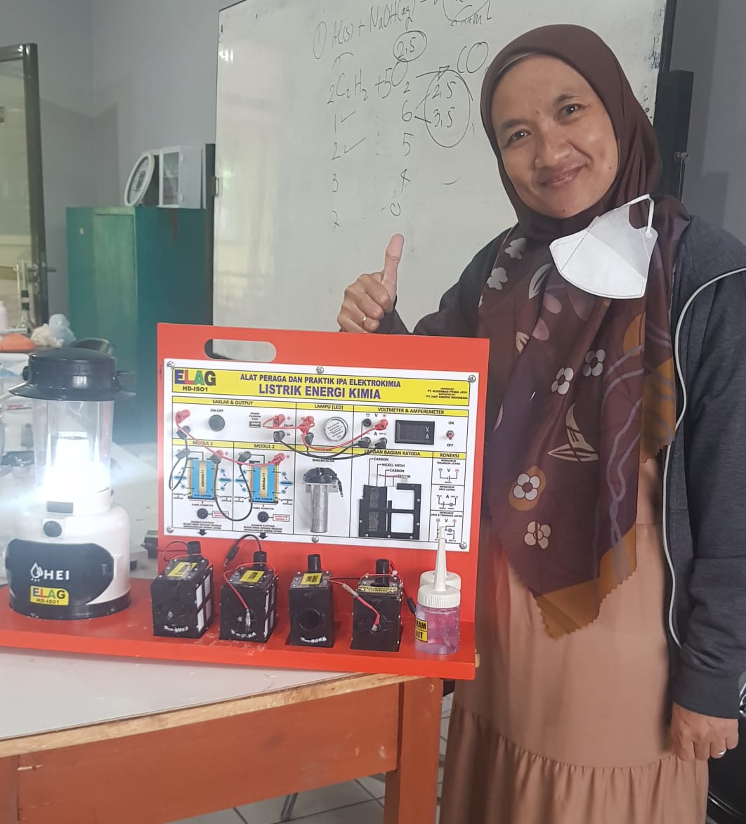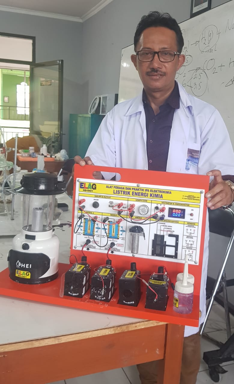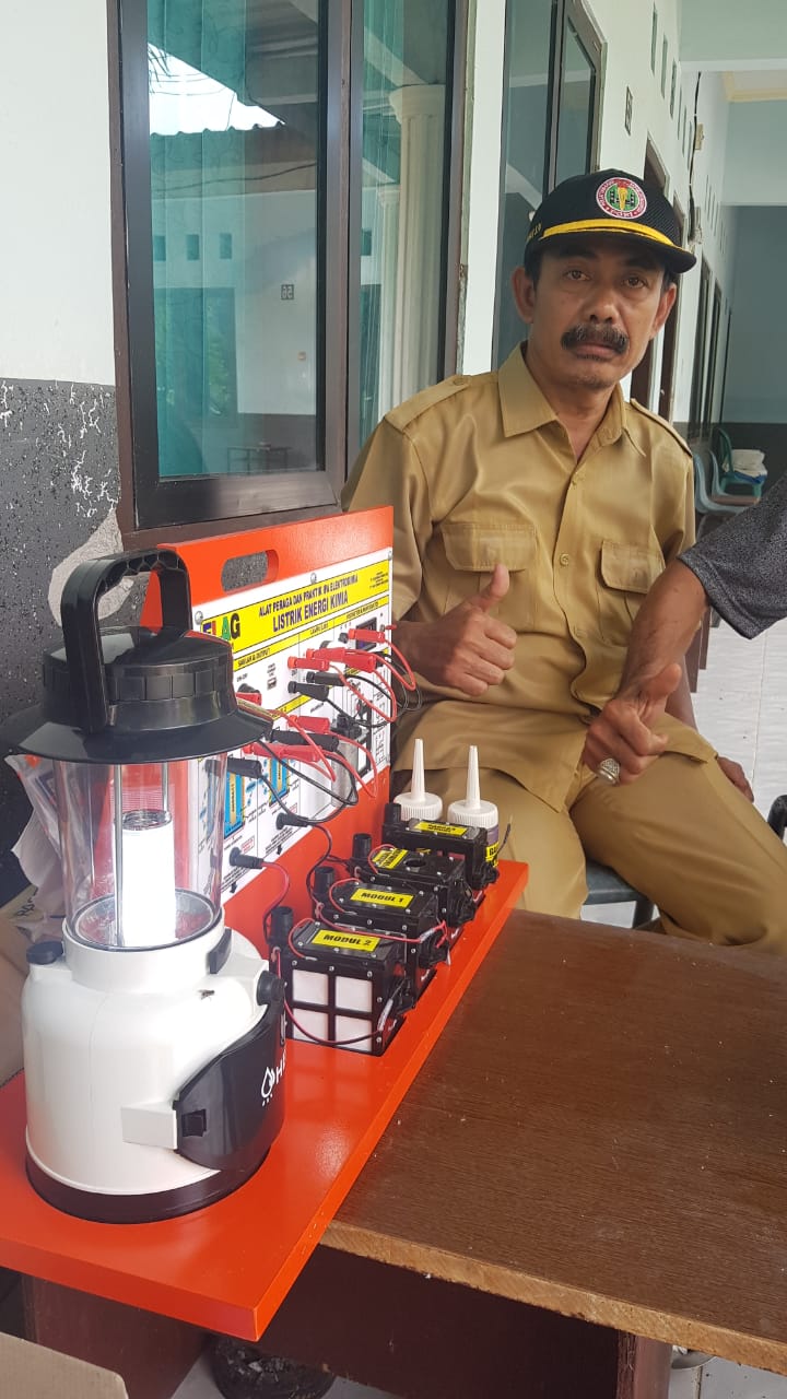 HENDRO YULIANTO, S.Pd. Wakasek Bidang Kurikulum SMKN 1 Pebayuran Kab. Bekasi bersama Dewan Guru mendemonstrasikan Alat Peraga Elektrokimia ELAG yang sangat dibutuhkan dalam pembelajaran di era merdeka mengajar dan merdeka belajar.