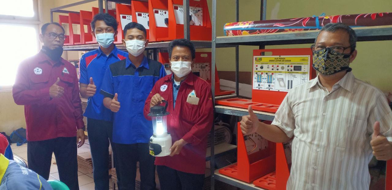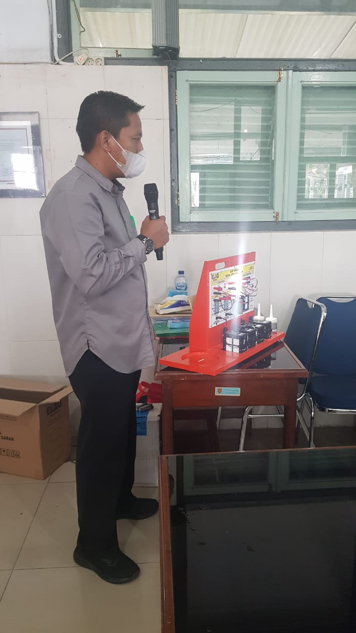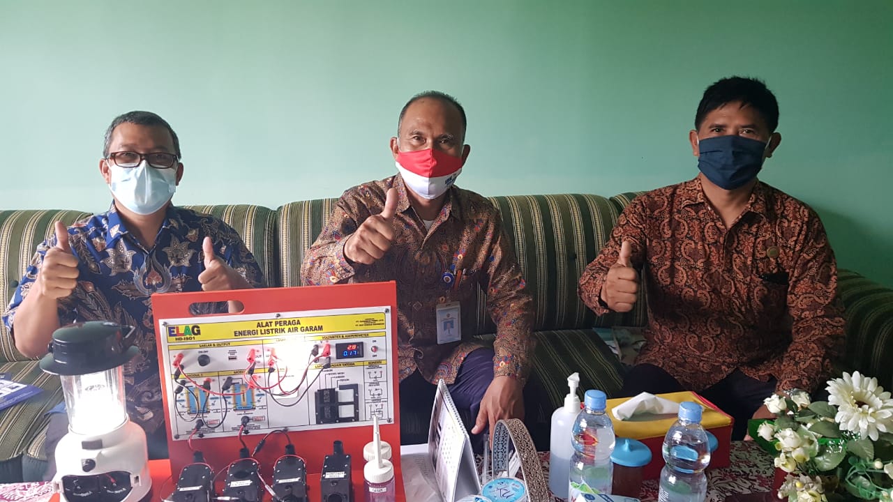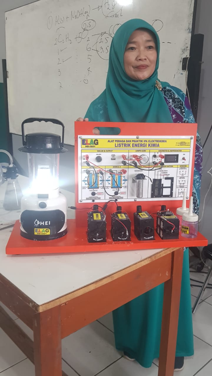 HENDRO YULIANTO, S.Pd. Wakasek Bidang Kurikulum SMKN 1 Pebayuran Kab. Bekasi bersama Dewan Guru mendemonstrasikan Alat Peraga Elektrokimia ELAG yang sangat dibutuhkan dalam pembelajaran di era merdeka mengajar dan merdeka belajar.
