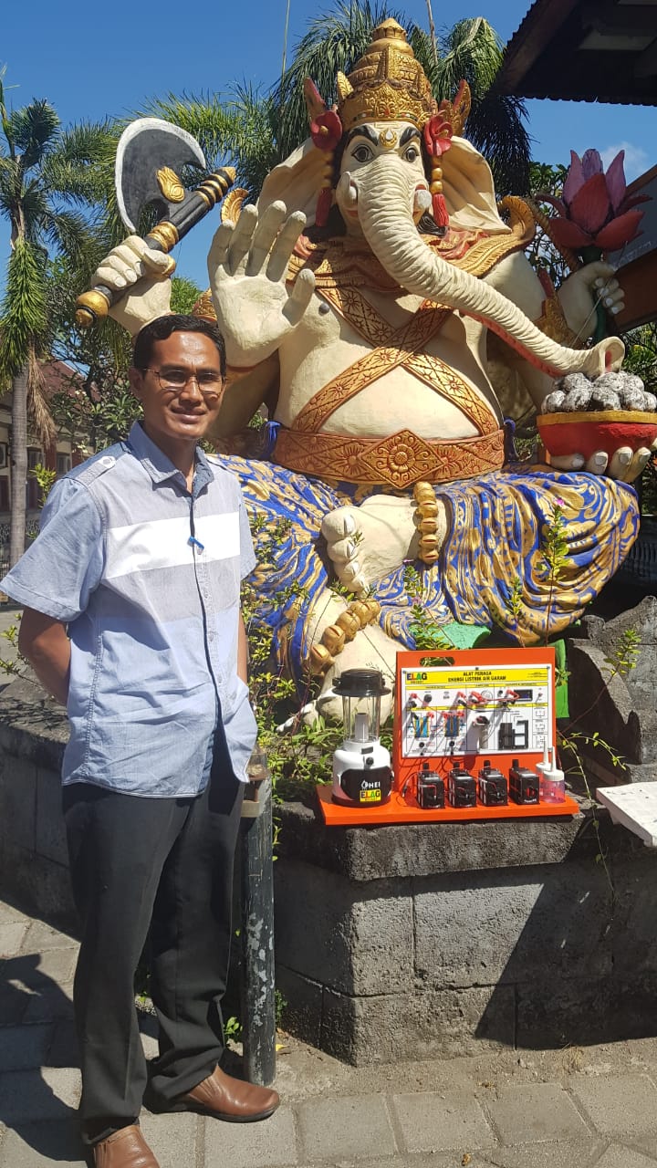 WIJI LAKSONO, SPd. Guru SMKN 2 DENPASAR diabadikan di halaman SMKN 2 DENPASAR, BALI pasca testimoni Alat Peraga IPA ELAG.