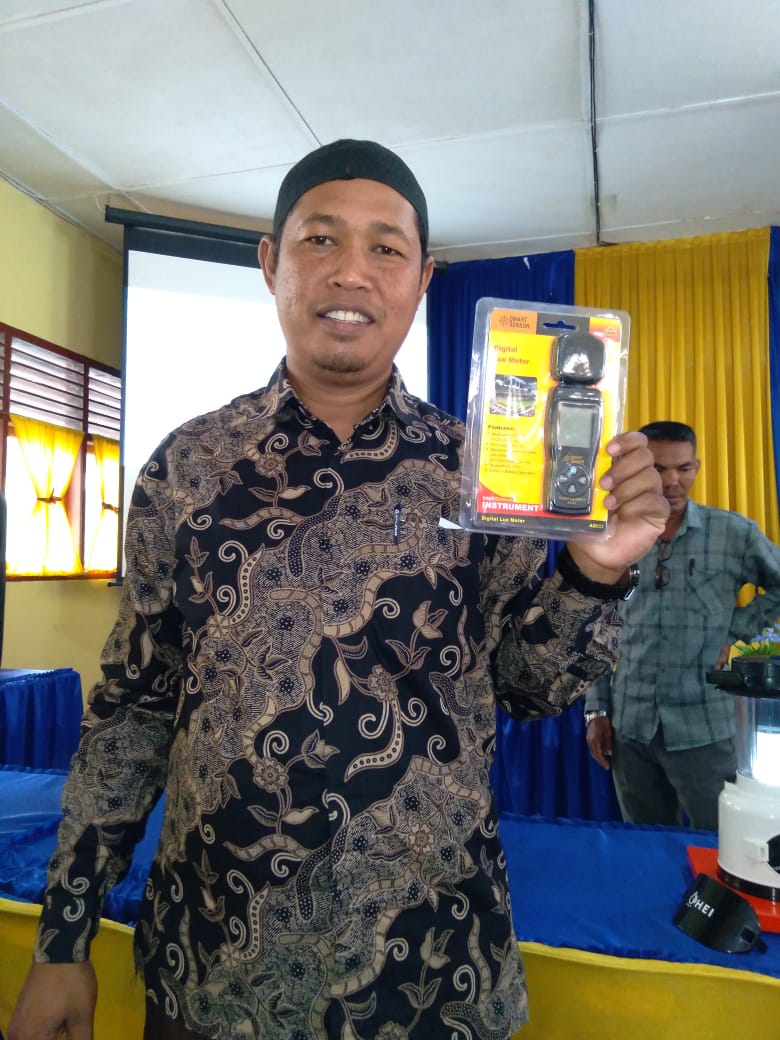 ABDUL HAFIS, S.Si. guru SMPN 1 Indra Makmu Aceh Timur pertama sekali menyaksikan peragaan Luxmeter melalui Alat Peraga IPA ELAG.