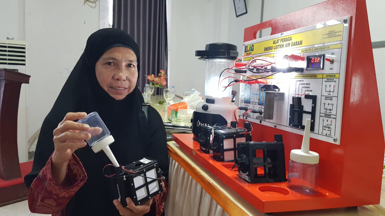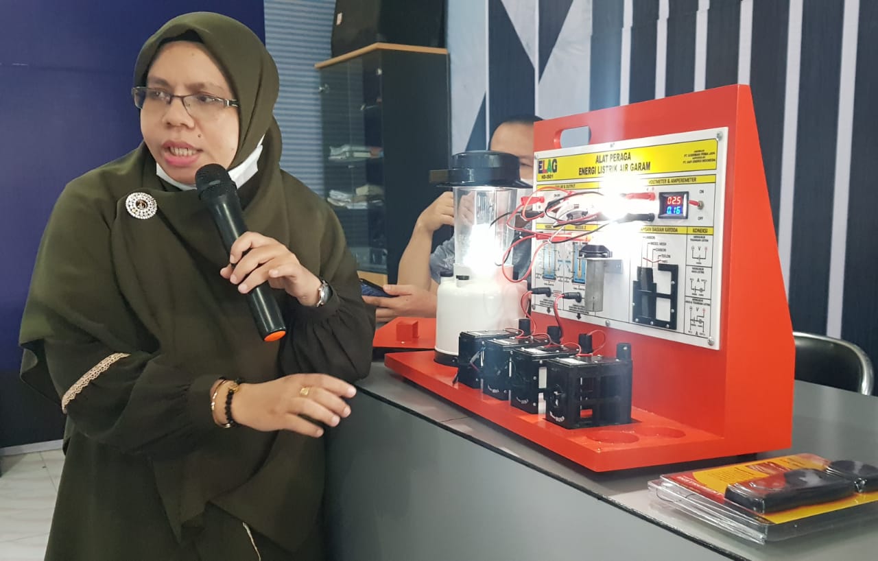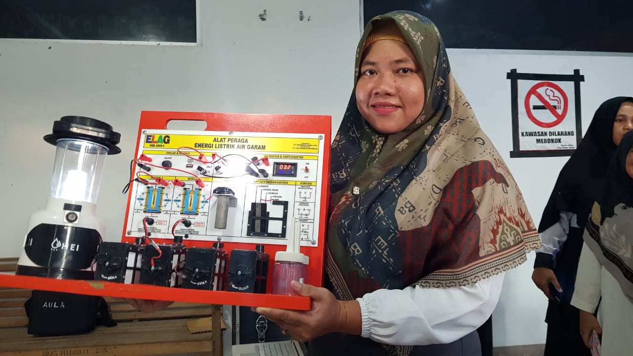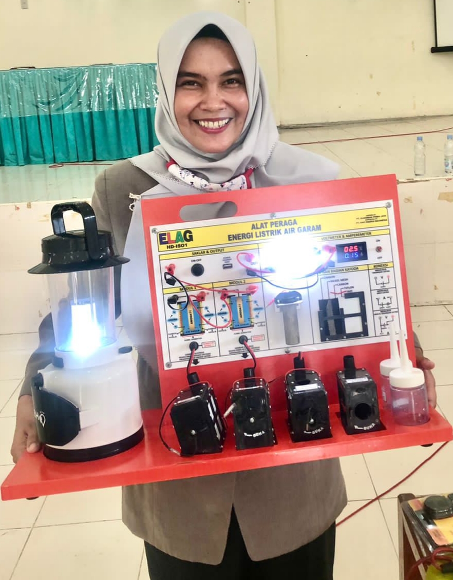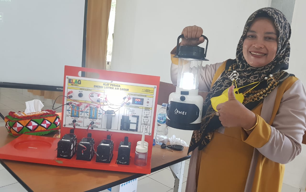 AYURISMA ARIANI, S.Pd. guru SDN 13 Simeulue Timur bertekad harus mampu mengganti air garam atau air laut dengan jenis air lainnya dengan tujuan dapat menghasilkan energi listrik yang kapasitasnya lebih besar.