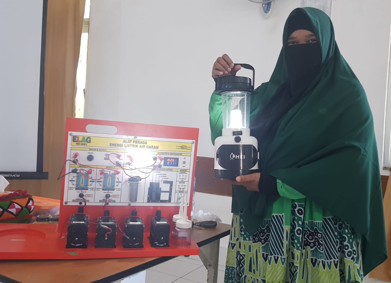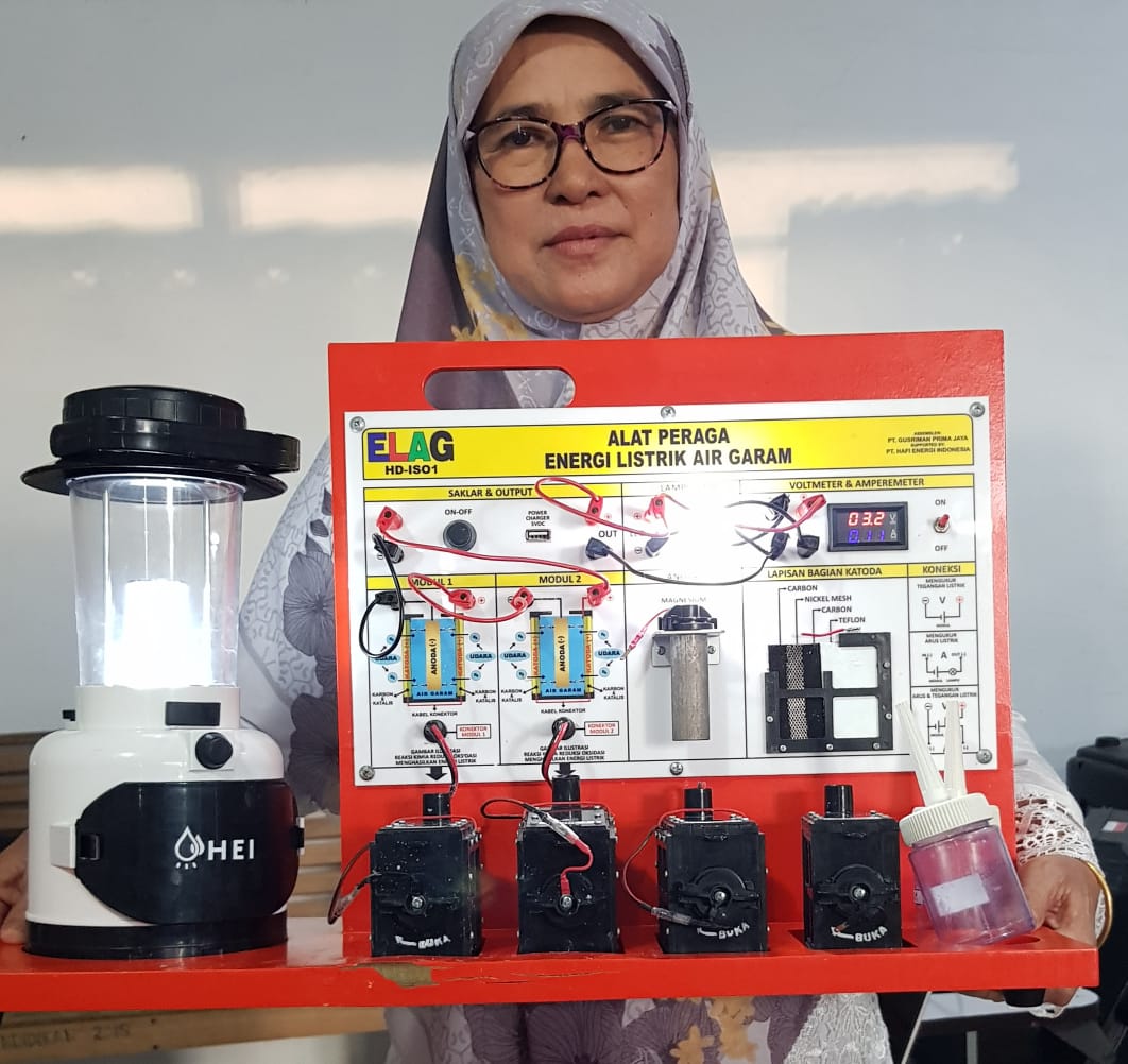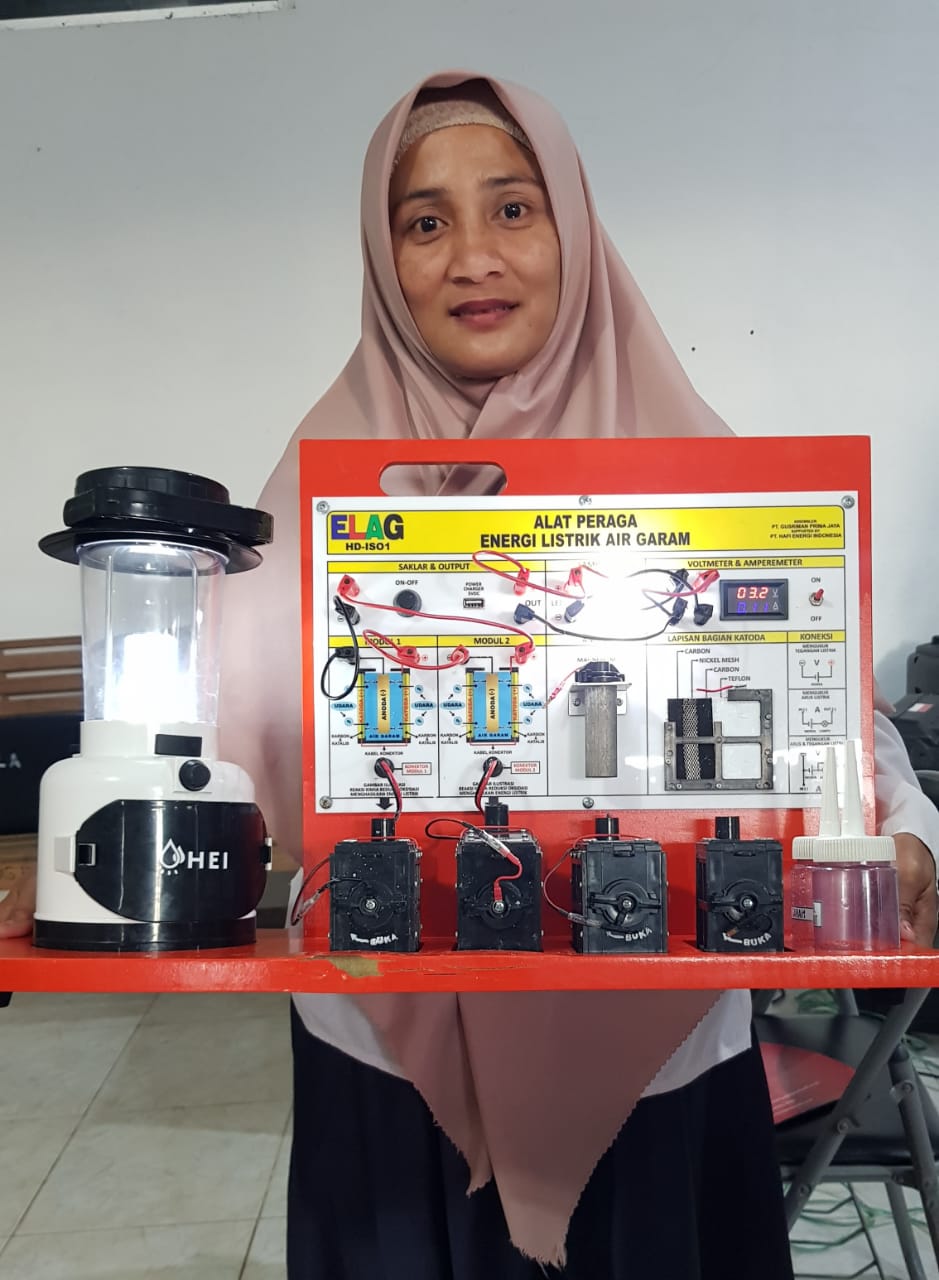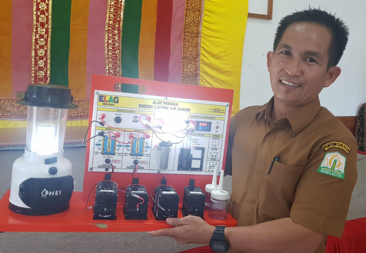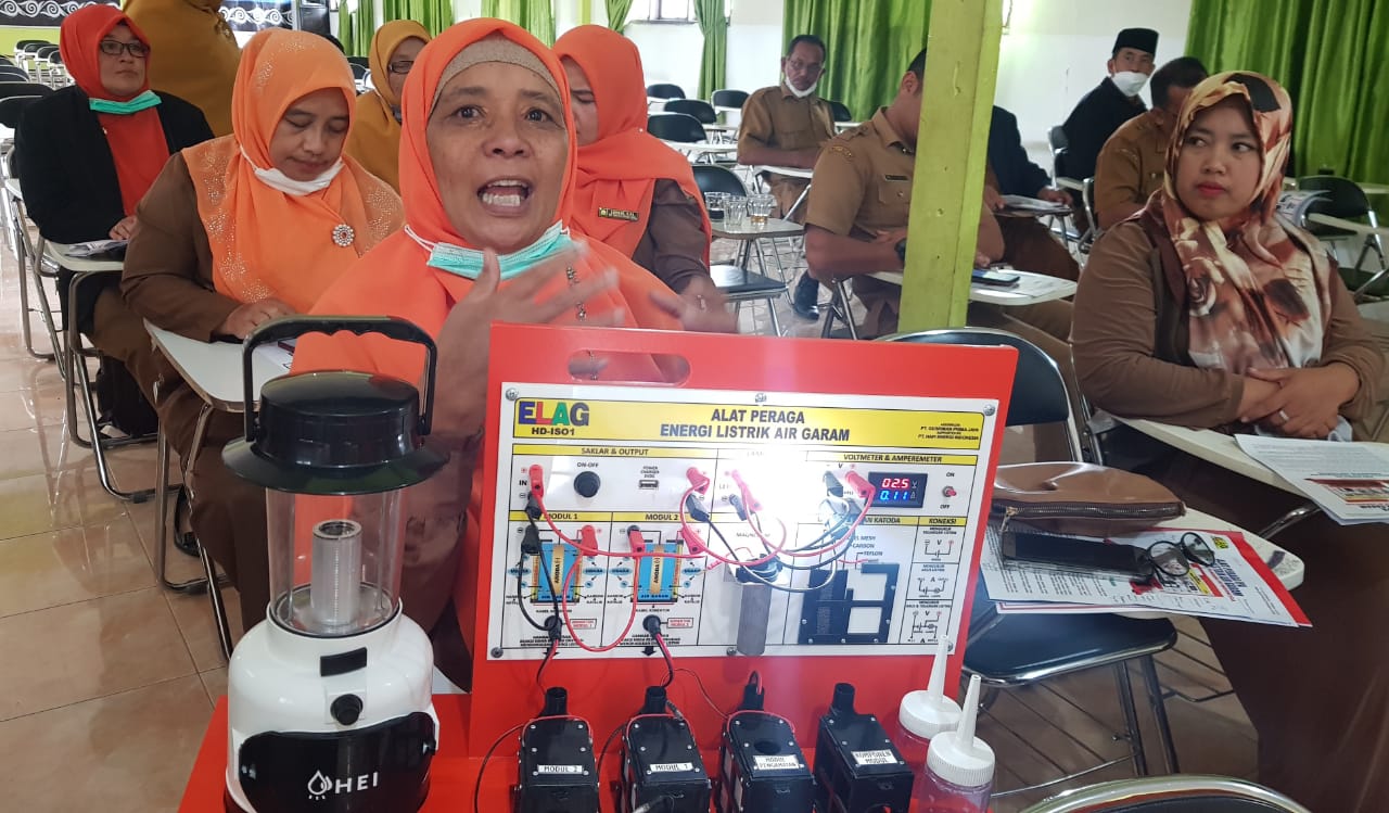 AYURISMA ARIANI, S.Pd. guru SDN 13 Simeulue Timur bertekad harus mampu mengganti air garam atau air laut dengan jenis air lainnya dengan tujuan dapat menghasilkan energi listrik yang kapasitasnya lebih besar.
