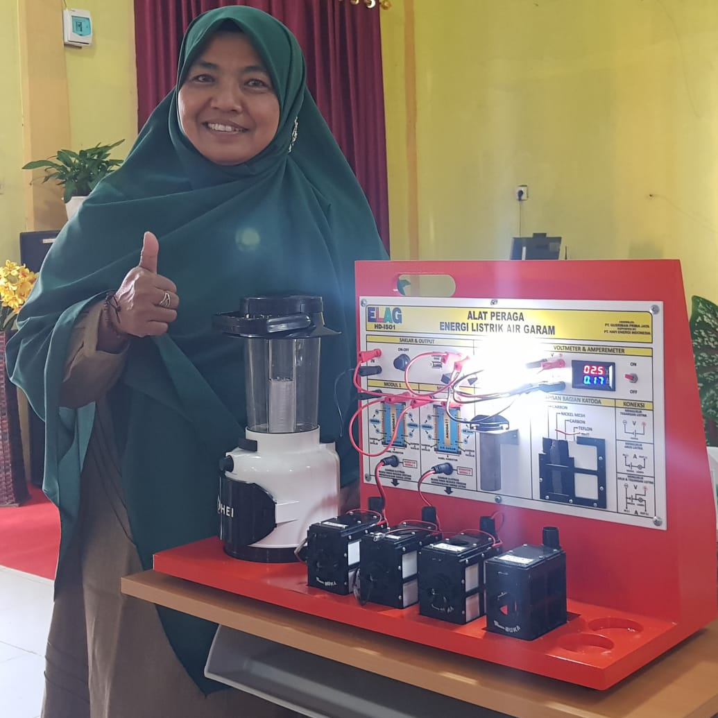 MULKISAH, ST. Guru Kimia SMAN 1 BUKIT Bener Meriah Provinsi Aceh menyatakan Alat Peraga IPA ELAG membuat guru dan siswa bereksen di sekolah memodifikasi larutan selain larutan garam.