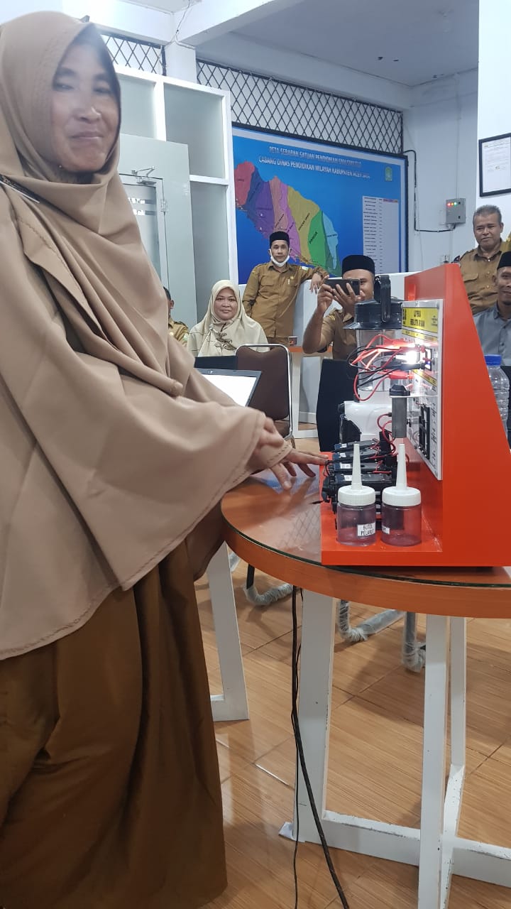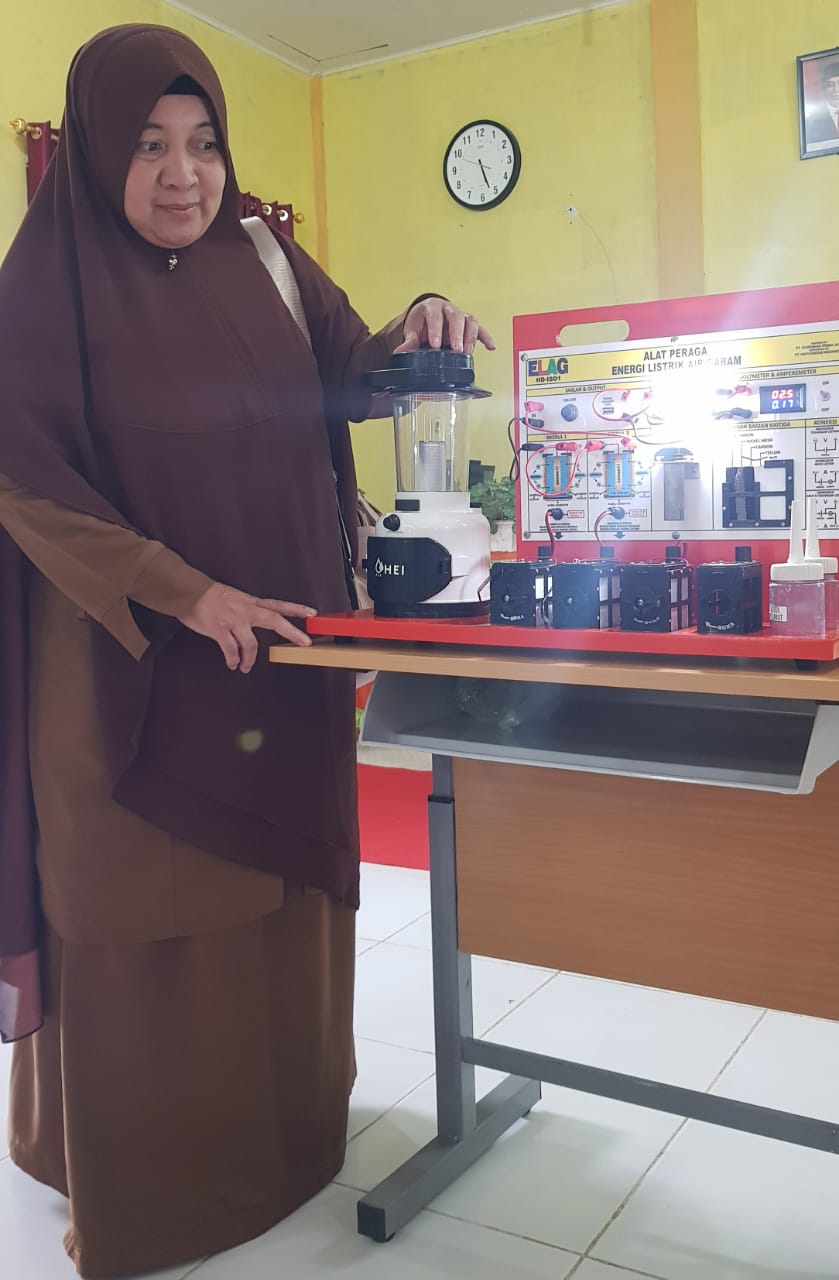 JURNELLY, S.Ag. guru agama SMAN 2 SINABANG Kabupaten Simeulue memastikan alat peraga sains berpandu ajaran agama ada di Alat Peraga ELAG.