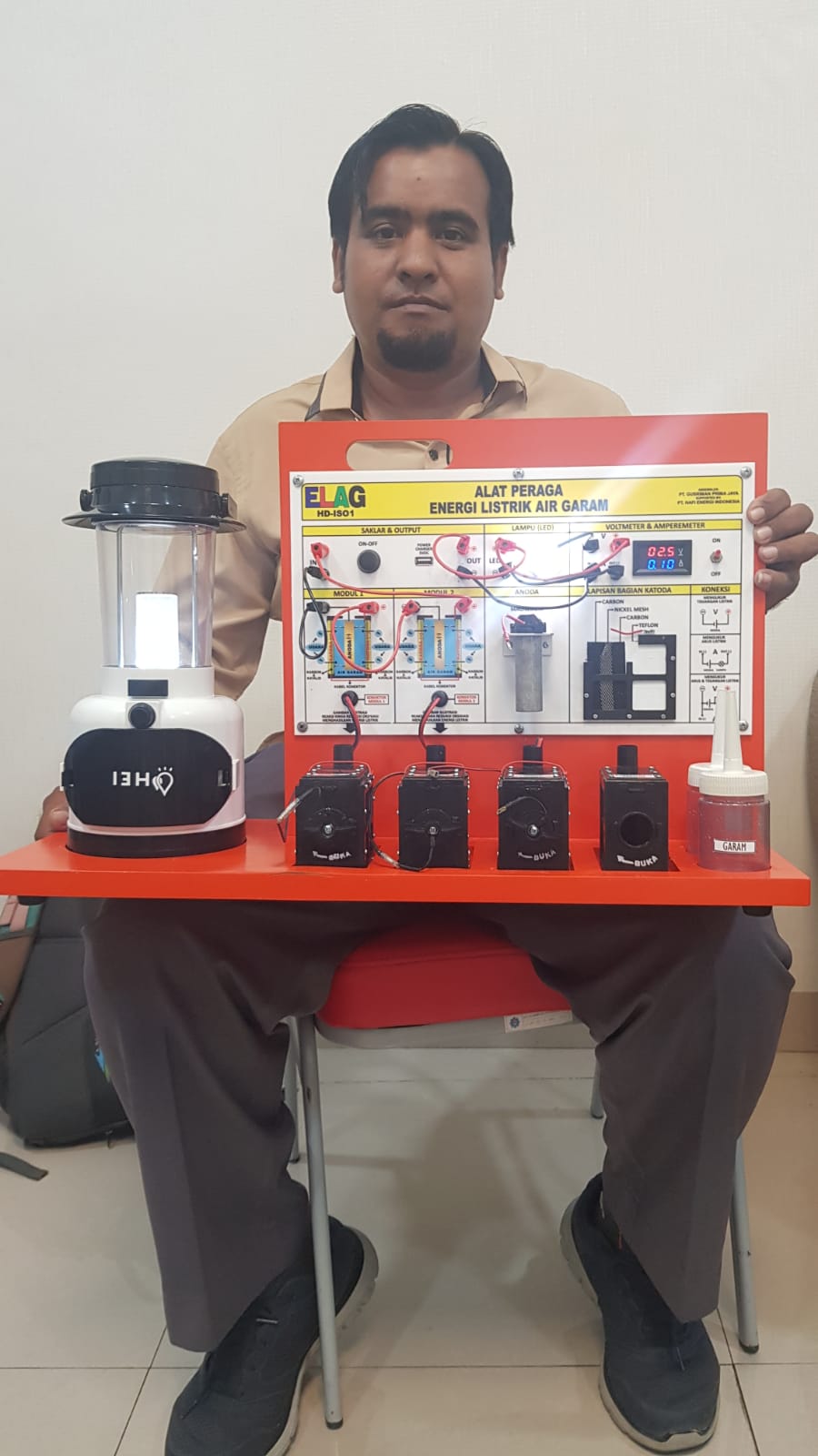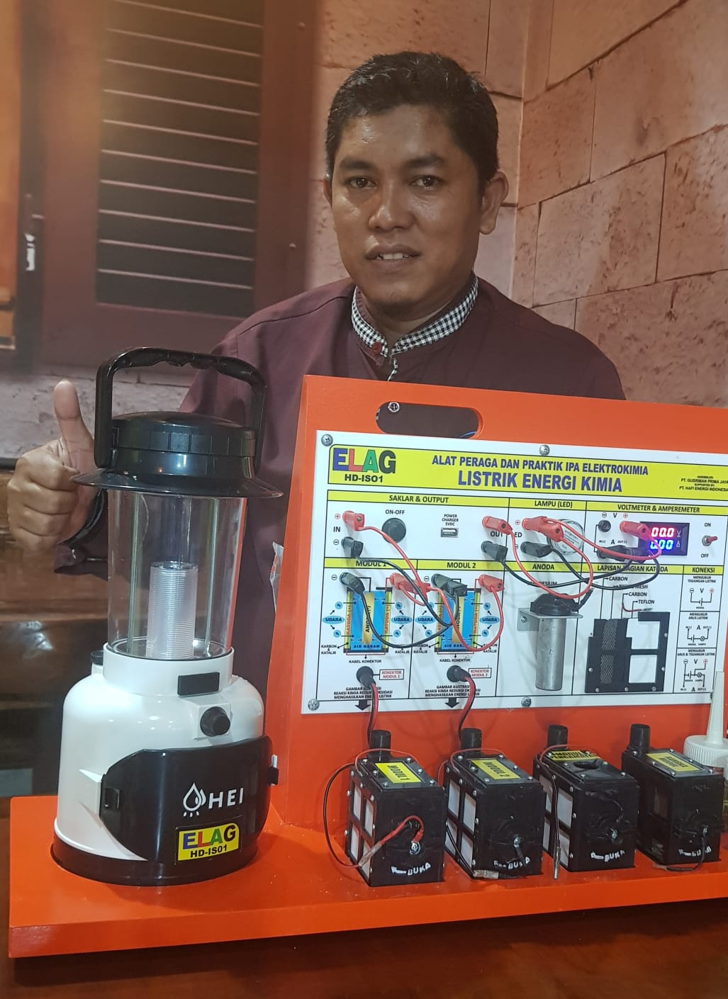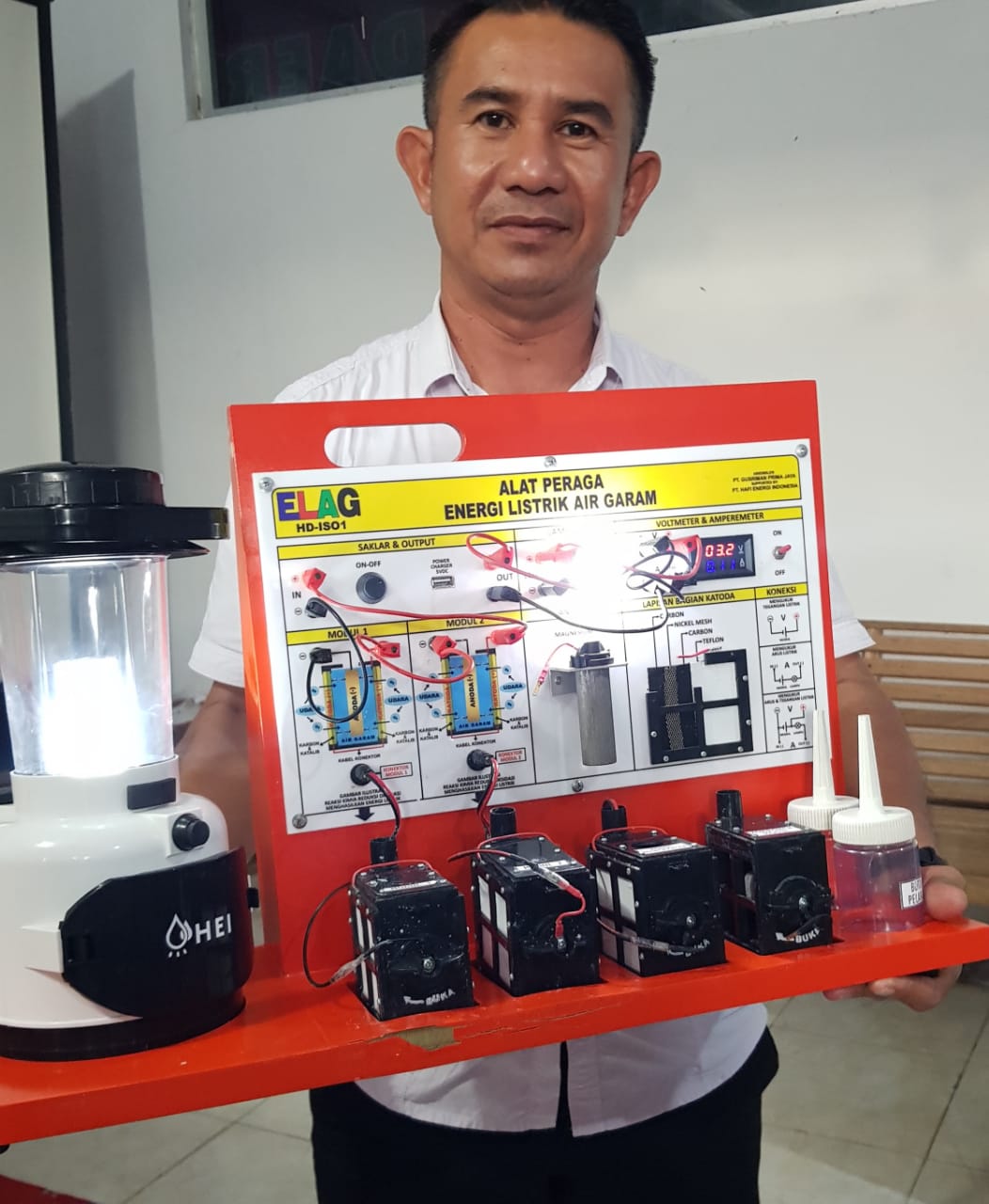 LEVI PRIHATA, M.Pd. Guru fisika SMA IT AR RAIHAN Bandar Lampung menyatakan terkejut ketika dioperasikan Alat Peraga IPAS Elektrokimia Listrik Energi Kimia ELAG ternyata dapat langsung menyala dengan terang dan stabil cahanya, benar-benar diperlukan untuk alat dan media pembelajaran khususnya memperdalam konsep dan teori hukum sel volta, anoda, katoda, redoks dan sangat mendukung kesuksesan merdeka mengajar dan merdeka belajar.