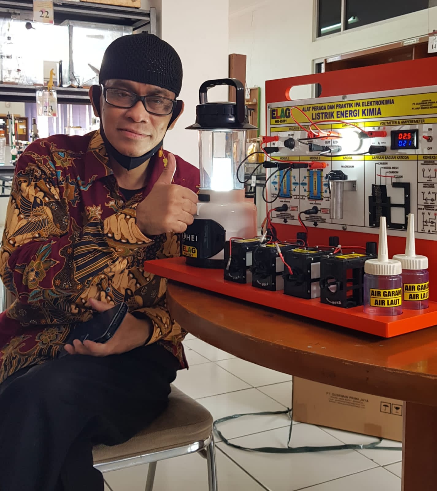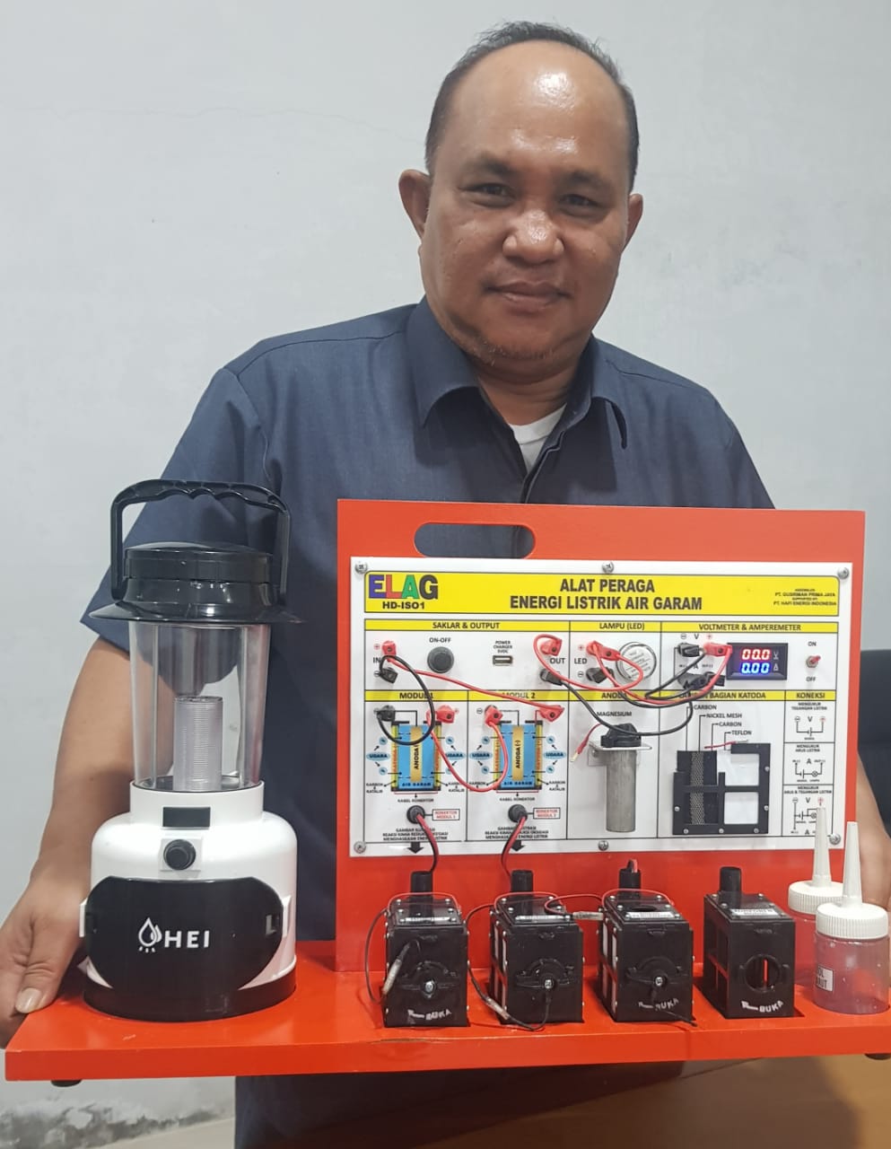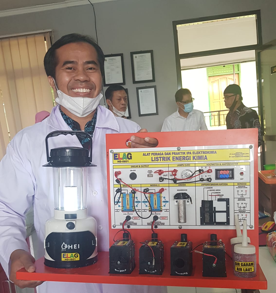LEVI PRIHATA, M.Pd. Guru fisika SMA IT AR RAIHAN Bandar Lampung menyatakan terkejut ketika dioperasikan Alat Peraga IPAS Elektrokimia Listrik Energi Kimia ELAG ternyata dapat langsung menyala dengan terang dan stabil cahanya, benar-benar diperlukan untuk alat dan media pembelajaran khususnya memperdalam konsep dan teori hukum sel volta, anoda, katoda, redoks dan sangat mendukung kesuksesan merdeka mengajar dan merdeka belajar.