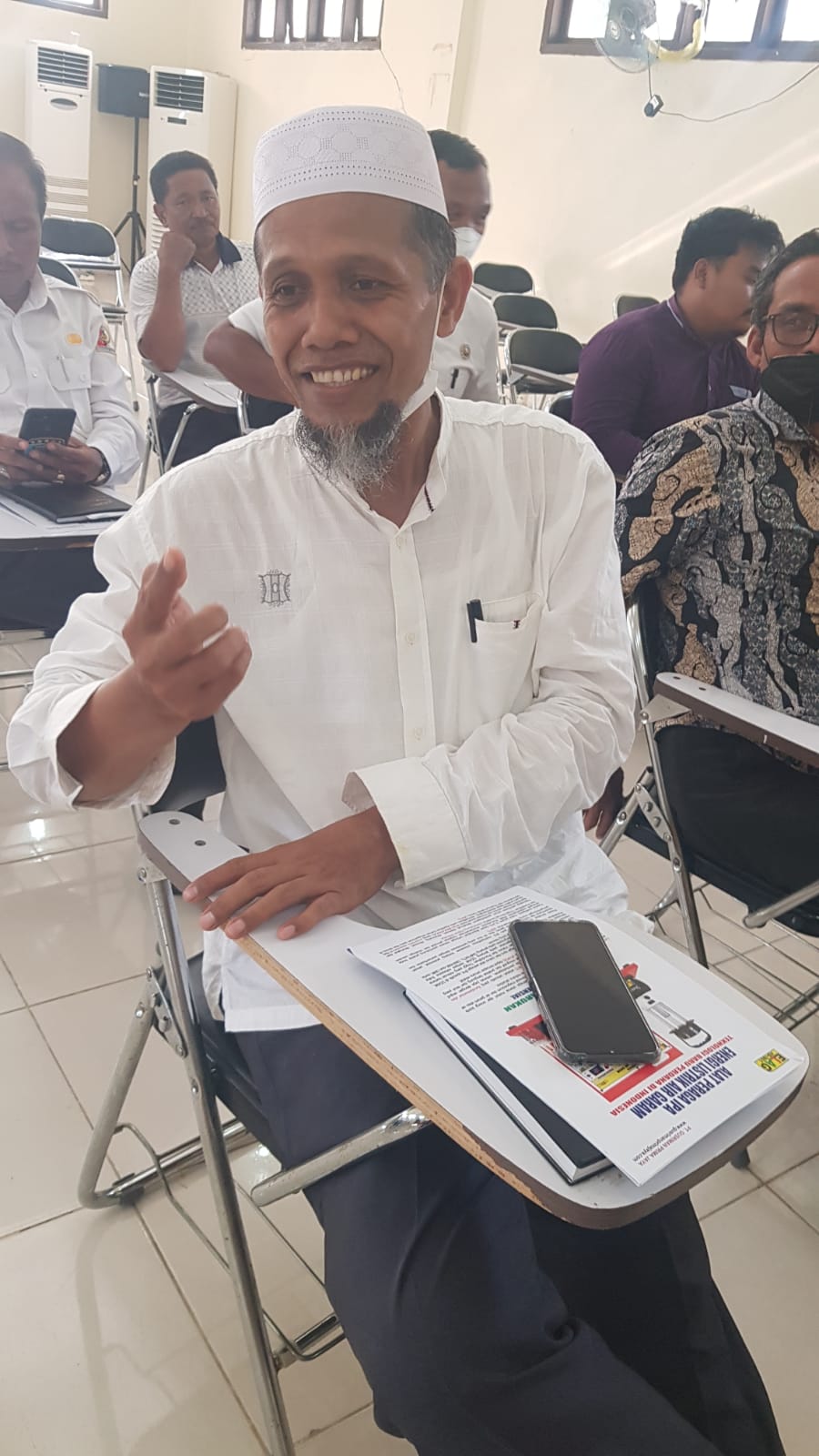 Peserta MGMP Kimia MA Kab. Pati, Jawa Tengah sangat antusias memperhatikan uji coba penggunaan Alat Peraga ELAG (06-08-2022) di MAN 1 Pati, Jawa Tengah.