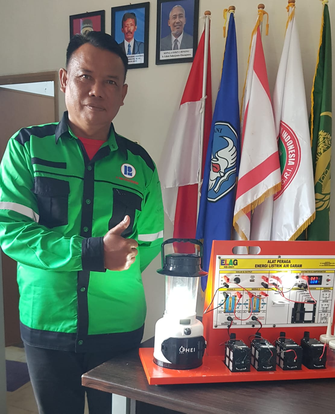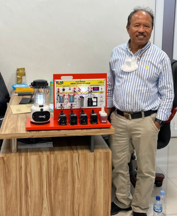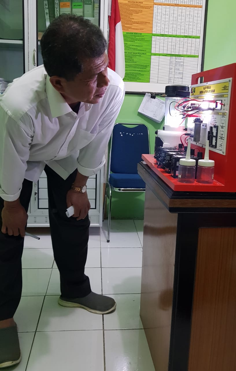 Dr.Gatot Hari Priowirjanto,koordinator SEAMEO Center setelah memperhatikan Alat Peraga Energi Listrik Air Garam , mengatakan sangat perlu diketahui oleh siswa siswi smk agar segera diaplikasikan dalam teknologi pemanas atau penggerak.