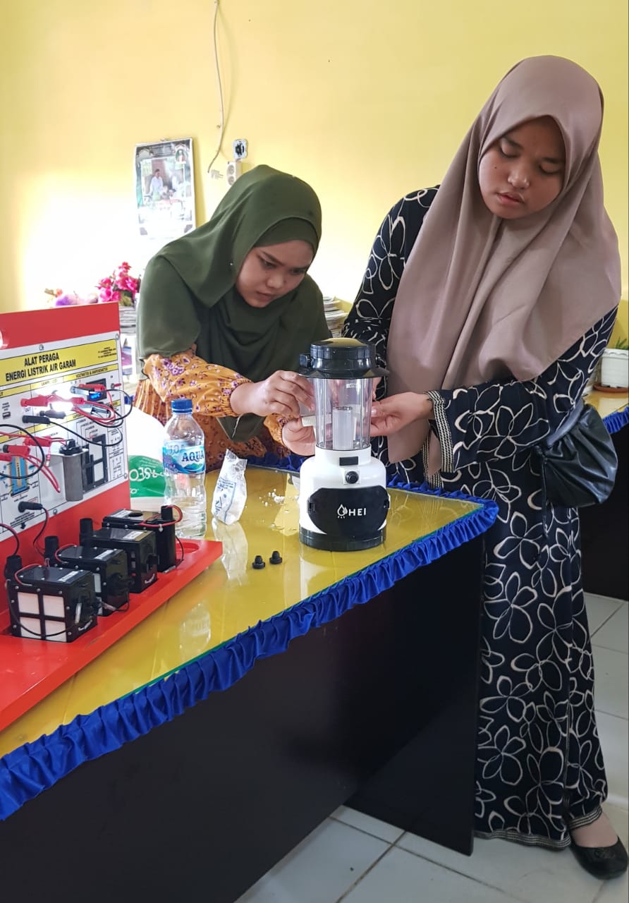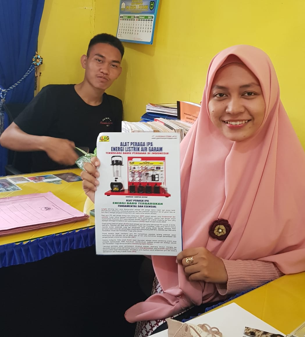 Guru IPA SMPN 4 Teupah Barat Kabupaten Simeulue FITRIANI, S.Pd. memastikan bahwa bermacam energi alternatif dapat dipelajari dan dipraktikkan oleh guru bersama peserta didik dengan mengambil sistem dan komponen Alat Peraga IPA ELAG yang dibuat dengan pendekatan scientific approarch.