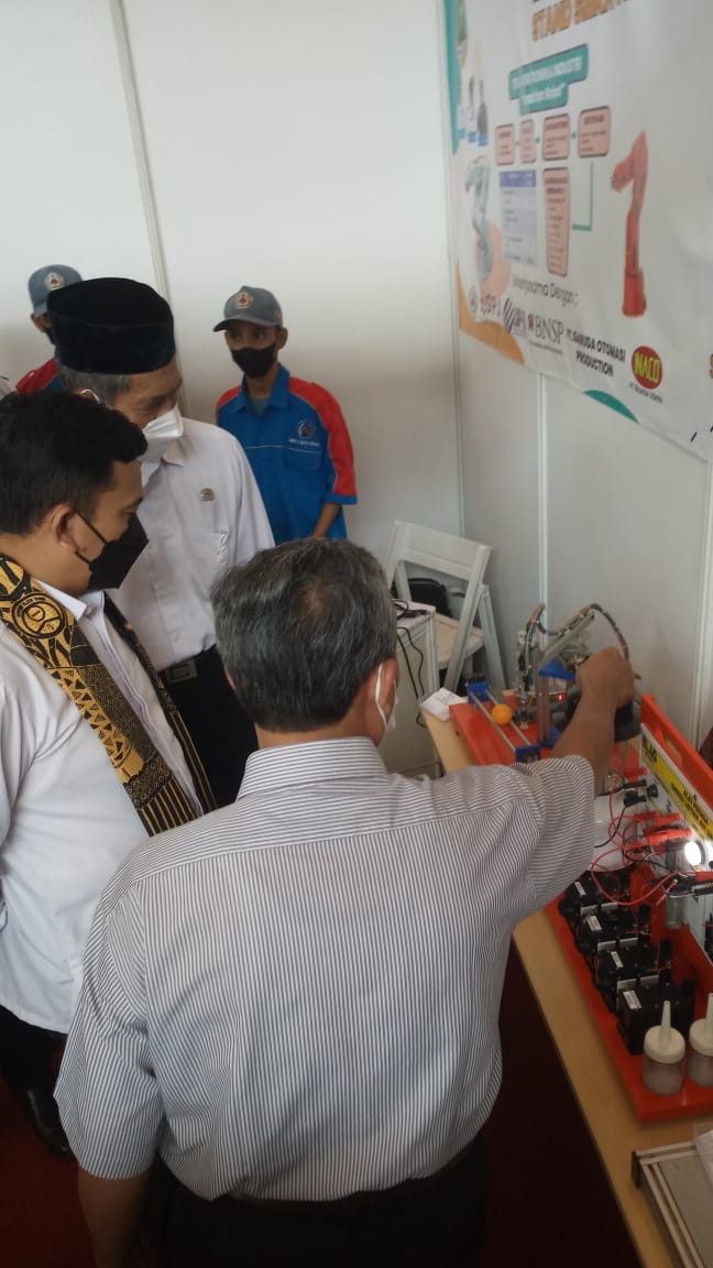 Kepala Kantor Cabang Dinas ( KCD) Wilayah III , H I Made Supriatna,M,Si memberikan apresiasi terhadap peralatan PT.Gusriman Prima Jaya untuk meninglatkan kompetensi siswa SMK dan SMA. Dalam Pameran di SMKN 5 Kota Bekasi.