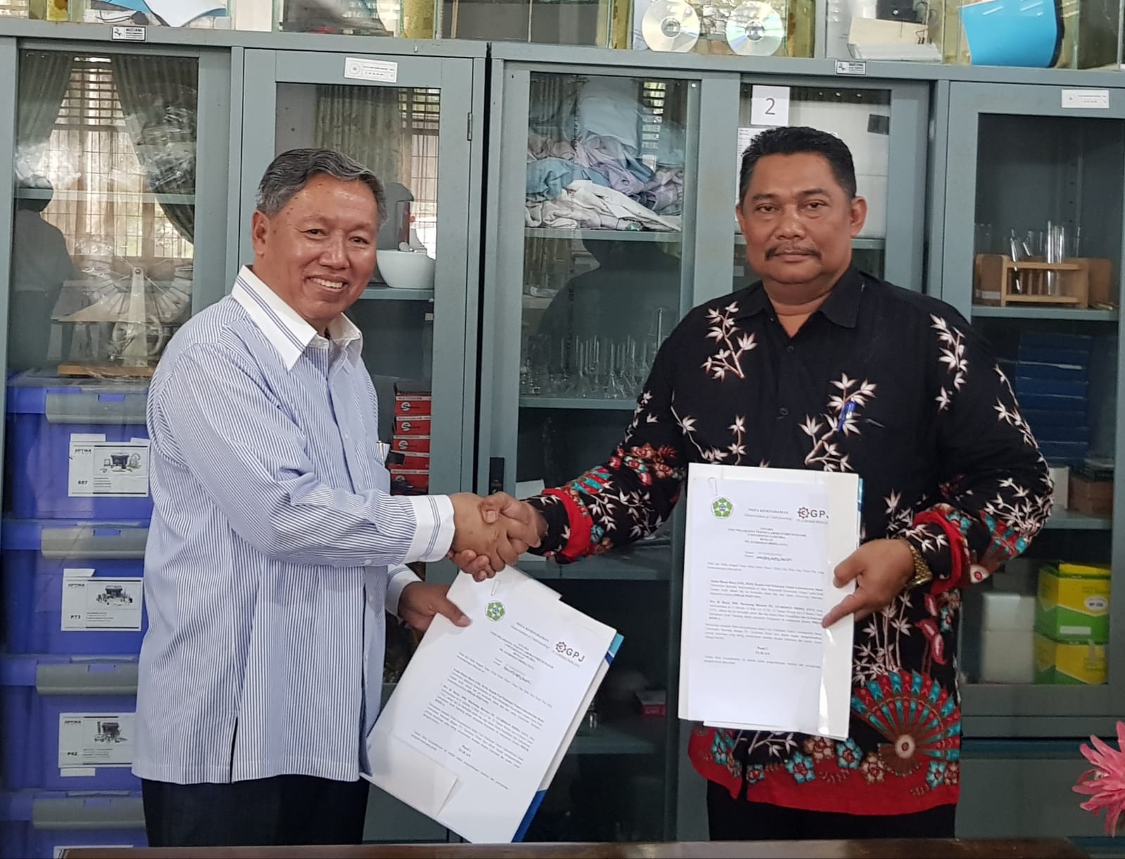 Penyerahan Alat Peraga dan Praktik IPA Elektrokimia ELAG dari PT. GUSRIMAN PRIMA JAYA kepada Kepala Laboratorium Fisika Fakultas MIPA dan Kesehatan Universitas Muhammadiyah Riau NENENG FITRYA, M.Si. tgl. 03-09-2022 di Pekanbaru, Riau.