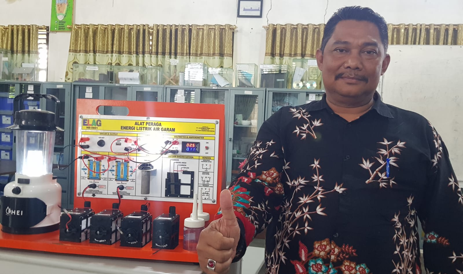 NYAK LAMUDIN, S.Pd., M.M. Kepala SMAN NEGERI PERISAI KUTACANE, ACEH TENGGARA memberikan ulasan Alat Peraga IPA ELAG sebagai salah satu alat peraga terbaru yang relevan dengan Kurikulum 2013 dan Kurikulum Merdeka Belajar yang diperlukan utamanya kami yang di daerah pegunungan.