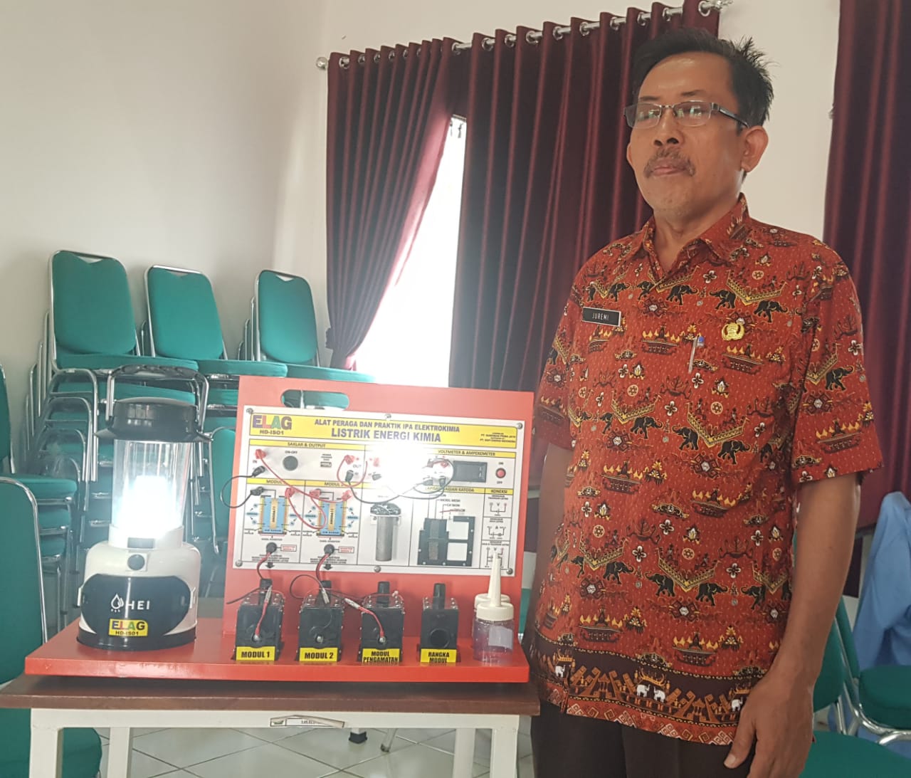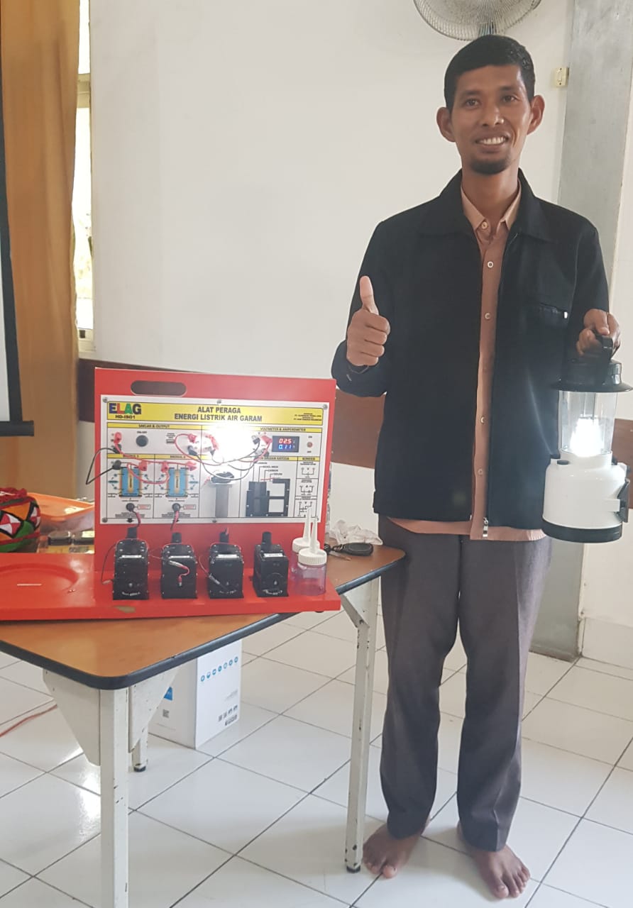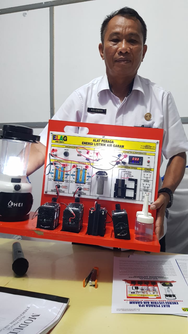 INDRA KURNIAWAN, S.Pd., M.Kes. Guru SMKN SUKOHARJO Kab. Pringsewu Provinsi Lampung menyatakan awalnya tidak yakin adanya energi listrik dari proses senyawa kimia, tetapi setelah mempraktikkan sendiri Alat Peraga IPAS Elektrokimia ELAG ternyata benar dan dapat dikembangkan kelak di sekolah.