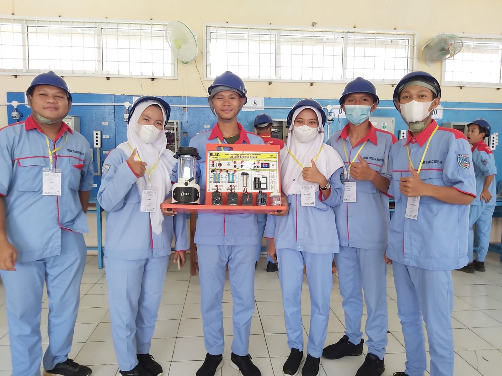 Siswa siswi jurusan teknik otomasi industri Smkn 1 sindang indramayu Jawa Barat merasa senang bisa merangkai alat peraga elektrokimia ini